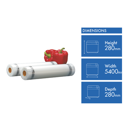 Preserve your food's freshness with the FoodSaver Vacuum Bag Roll 2 Pack 28cm. These versatile vacuum sealer bags are compatible with all Foodsaver models allowing you to keep your groceries and leftovers fresher for longer. The two 28cm diameter rolls each 5.4m in length provide ample material for sealing and storing a variety of items. By removing air and creating an airtight seal around your food these bags help prevent freezer burn oxidation and spoilage. The durable BPA-free material also makes these bags reusable and microwave safe. With the FoodSaver Vacuum Bag Roll 2 Pack 28cm you can save money by reducing food waste and extend the life of your fruits vegetables meats cheeses and more. The manufacturer's part number for this product is VS0520. Give your food the protection it deserves with the FoodSaver Vacuum Bag Roll 2 Pack 28cm today.