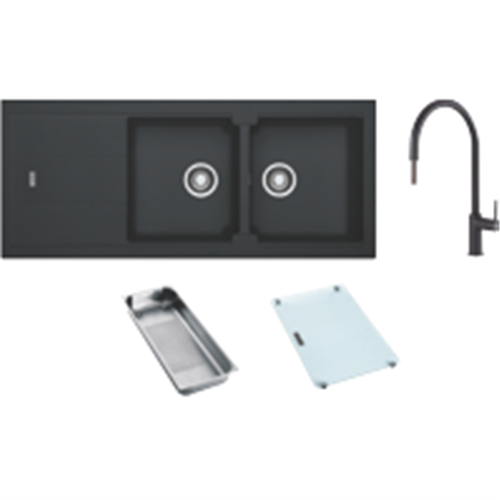 • Pack includes BLG621 Onyx Fragranite double bowl sink with reversible drainer