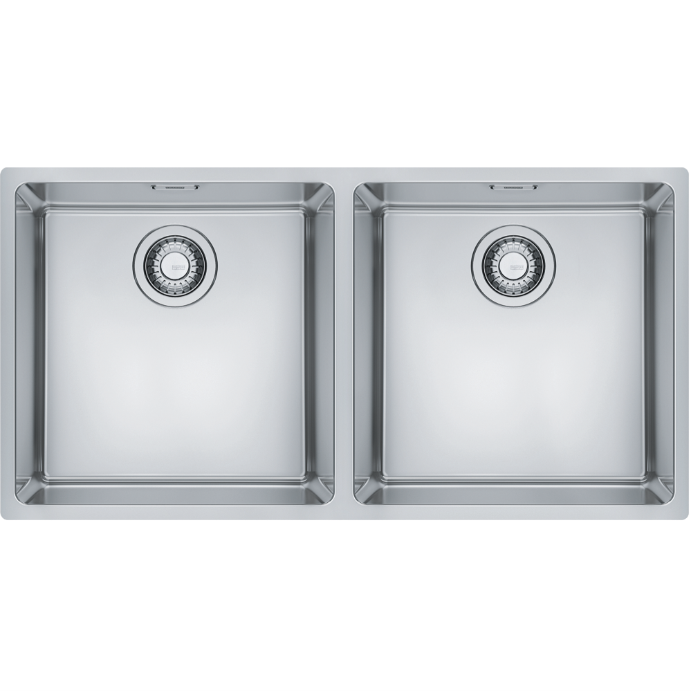 Bring sleek modern style to your kitchen with the Franke Maris double bowl sink. Crafted from durable stainless steel this sink makes an elegant addition to any contemporary kitchen. With a double bowl configuration you can soak dishes in one basin while rinsing produce in the other. The two generous 29L bowls offer ample room for all your dishwashing needs. Measuring 435mm high by 860mm wide this spacious sink provides a large work area that makes prep work a breeze. The two 400mm x 400mm bowls accommodate stacks of plates pots pans and more with ease. This sink installs as a topmount flushmount or undermount option for seamless integration into your countertop. Sound deadening pads minimize noise when washing up so you can enjoy quieter time at the sink. An included food preparation center provides a convenient ledge for slicing veggies and other kitchen tasks. The sink also features a waste outlet at the rear of the main bowl for easy garbage disposal connection. With Franke's exceptional 50 year warranty you can rely on this sink to withstand decades of regular use while retaining its flawless finish. Bring efficiency style and durability to your kitchen with the versatile Franke Maris double bowl sink. The manufacturer's part number for this product is MRX220-40/40.