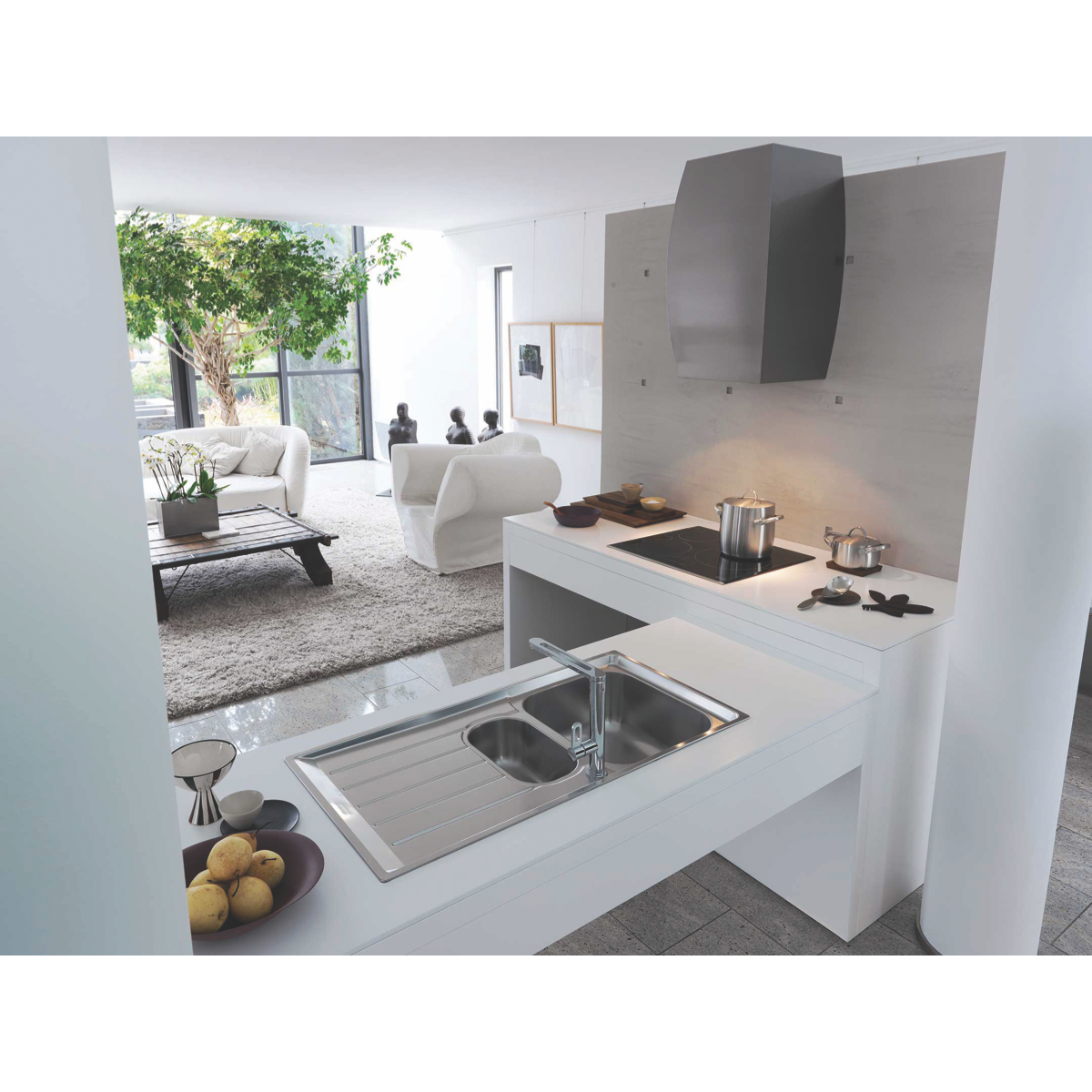 Bring sleek modern style and efficient functionality to your kitchen with the Franke Neptune 1&1/4 bowl right hand drainer stainless steel sink. This top mount double bowl sink is crafted entirely from robust and durable stainless steel for long lasting performance. With its spacious 26L main bowl and handy 28L auxiliary bowl you'll have ample room for washing dishes preparing meals and more. The main bowl measures a generous 420mm high by 360mm wide by 190mm deep while the smaller second bowl is 302mm high by 165mm wide by 130mm deep. Installation is a breeze thanks to the 984 x 494mm cut-out size. Rated for 500 kPa this sink can withstand years of daily use. The right hand drainer configuration provides an ergonomic solution for rinsing and drying. With 1 tap hole you can customize your faucet setup. Semi integrated waste outlets and an integrated sealing strip ensure a seamless look and prevent leaks. Give your kitchen a stylish facelift with the versatile Franke Neptune double bowl stainless steel sink. The manufacturer's part number for this product is NEX651RHD. See how this sink can enhance your culinary workflow today.