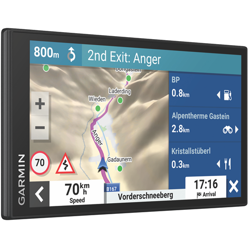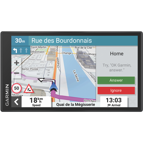Additional Features Easy to read display, Custom truck routing, Customise your arrival, Driver alerts, Garmin voice assistant