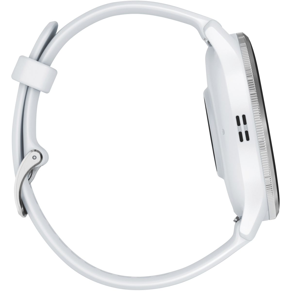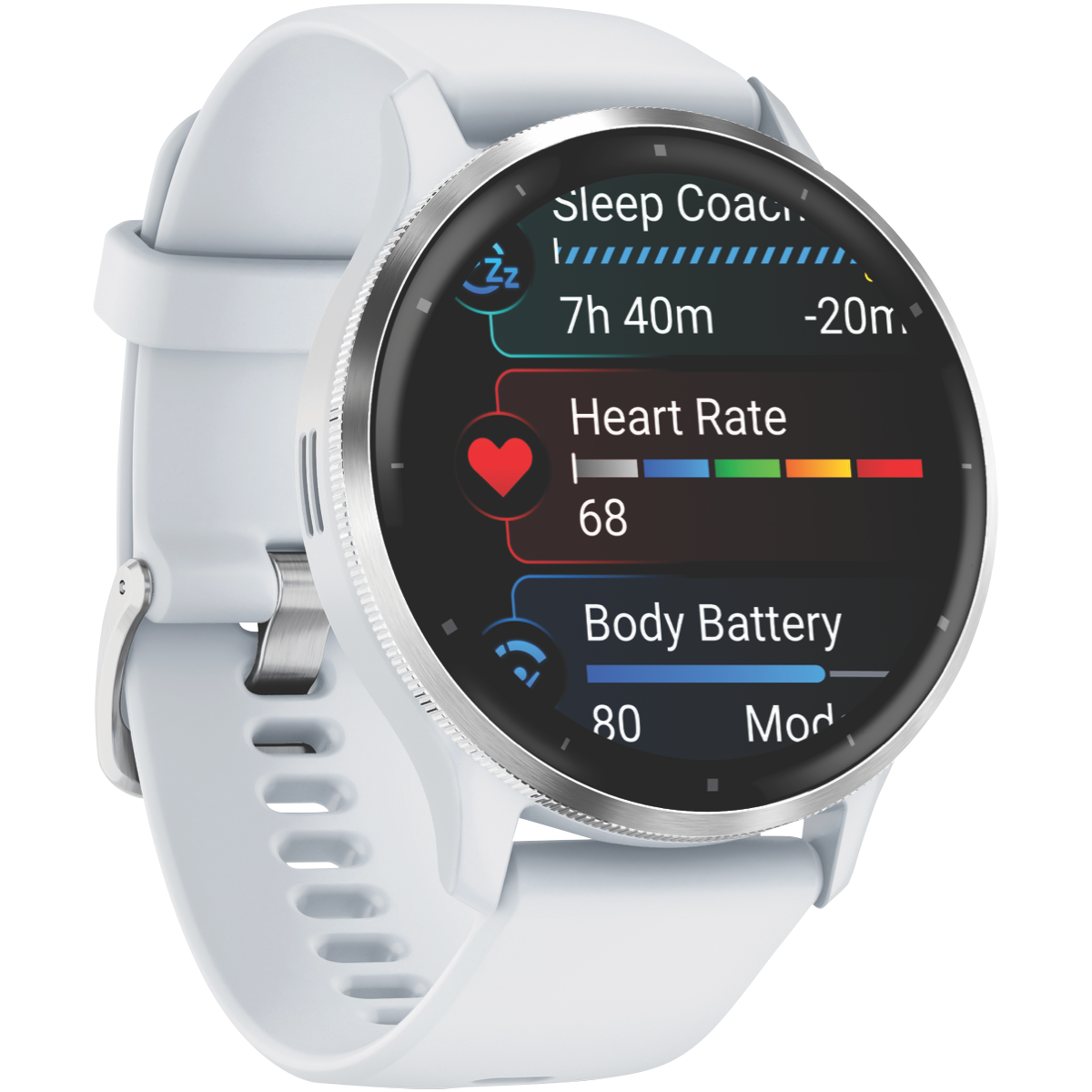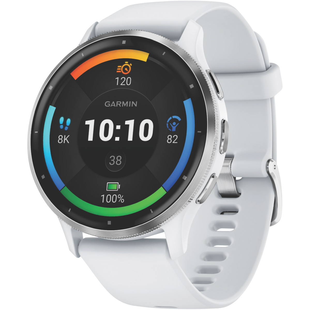 The new Garmin Venu 3 smartwatch in whitestone and silver is the ultimate wellness and fitness companion. With its stylish 45mm stainless steel case and bright AMOLED display this lightweight watch tracks your health 24/7. Monitor your heart rate blood oxygen sleep stress and more to gain deeper insights. Built-in GPS lets you accurately map outdoor workouts like running cycling and hiking without carrying a phone. Additional sensors like the barometric altimeter provide advanced metrics to optimize your training. Stay connected via Bluetooth Wi-Fi and cellular connectivity. With up to 14 days of battery life in smartwatch mode you can go longer between charges. The Garmin Venu 3 supports both iPhone and Android phones. Swim with confidence thanks to the watch's 5 ATM water resistance rating. This Garmin smartwatch helps you lead a healthier more active lifestyle. The manufacturer's part number for this product is 010-02784-00. Check out the Garmin Venu 3 today to experience the future of health and fitness tracking on your wrist.