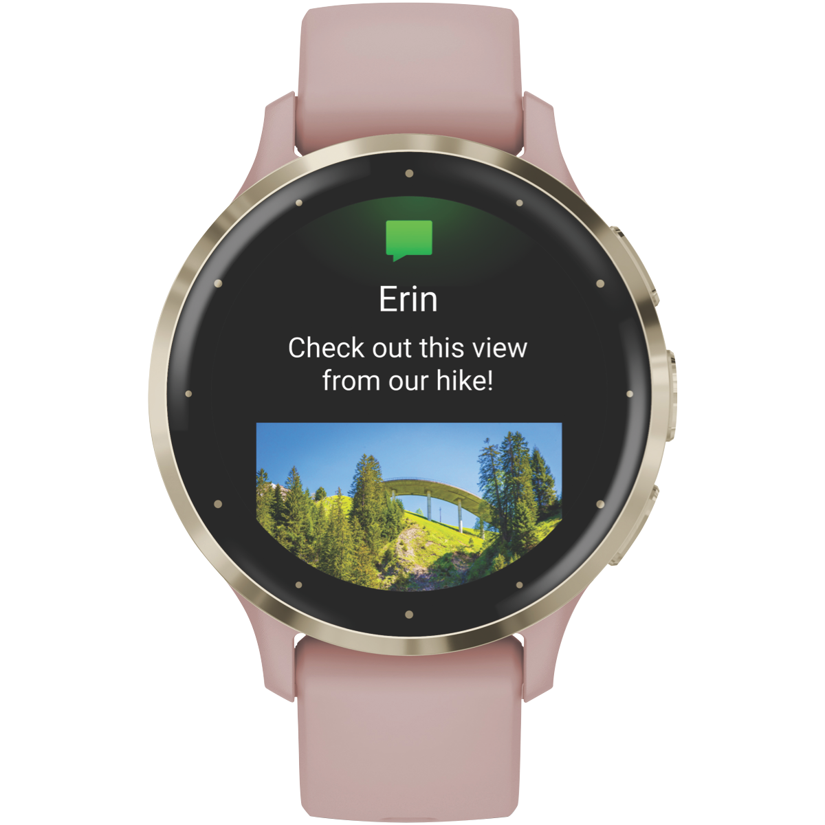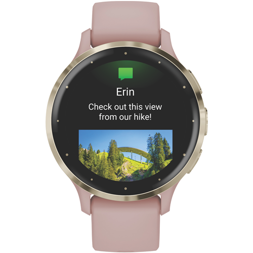 Stay connected and motivated with the Garmin Venu 3S smartwatch in a chic Dust Rose/Soft Gold colorway. This lightweight 41mm smartwatch boasts a crisp AMOLED display and stylish stainless steel bezel for vibrant visuals on the go. With built-in GPS you can accurately track pace distance and route when running or cycling while the Elevate wrist heart rate monitor provides continuous readings. Monitor sleep stress hydration blood oxygen levels and more to gain deeper insights into your overall wellbeing. Sync wirelessly to your compatible iPhone or Android device to receive notifications download songs and much more. The long-lasting battery lasts over 10 days in smartwatch mode so you can keep up with your active lifestyle. Customize your watch face and band to suit your style. The manufacturer's part number for this product is 010-02785-03. For a feature-packed yet feminine smartwatch the Garmin Venu 3S is a great choice.