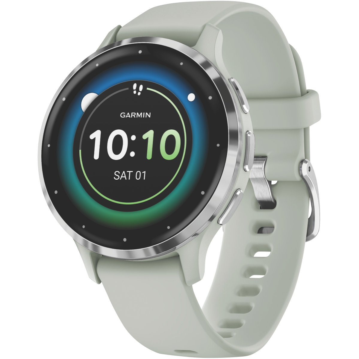 Experience the future of health and fitness tracking with the lightweight Garmin Venu 3S smartwatch designed to keep up with your active lifestyle. Featuring a stunning circular 1.2-inch AMOLED display this smartwatch monitors your health around the clock with built-in GPS heart rate pulse ox sleep tracking and more. Stay connected on the go with phone notifications contactless payments and music storage for phone-free listening. With a slender 41mm stainless steel case and up to 10 days of battery life in smartwatch mode the Venu 3S offers detailed health insights advanced fitness features and stylish versatility. Track your workouts and daily steps monitor sleep quality manage stress and more with this feature-packed smartwatch. Customize your look with interchangeable bands in a range of fresh colors. Water rated to 5 ATM the durable Venu 3S withstands splashes and swims. Sync stats seamlessly to the Garmin Connect app and get motivated to move. The manufacturer's part number for this product is 010-02785-01. Check out the Garmin Venu 3S smartwatch today for a healthier more active life.