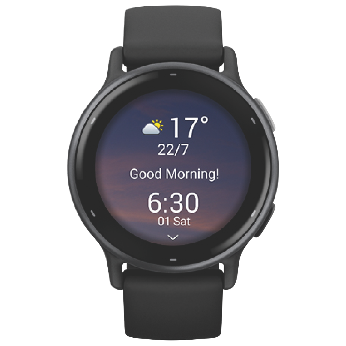 The stylish Garmin Vivoactive 5 smartwatch in Black/Slate offers the ultimate in health and fitness tracking in a slim lightweight design. With a vibrant 1.2 AMOLED display this wearable watch monitors heart rate blood oxygen sleep stress and more to provide comprehensive health insights. Built-in GPS allows you to accurately track pace distance and intensity during runs rides and swims. Additional smart features like contactless payments music storage and intelligent notifications ensure this watch seamlessly integrates into your connected lifestyle. With up to 11 days of battery life in smartwatch mode or 5 days with the display always-on you can rely on this rugged water resistant Garmin watch to accompany you wherever the day takes you. Monitor your health maximize your training and streamline your day with the feature-packed Vivoactive 5. The manufacturer's part number for this product is 010-02862-10. Discover the Vivoactive 5 today.