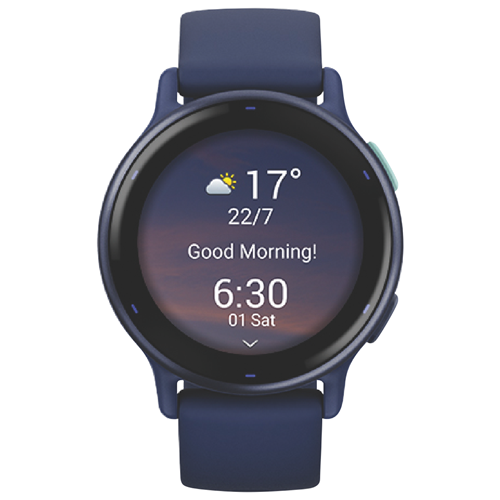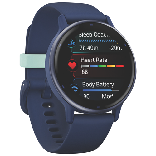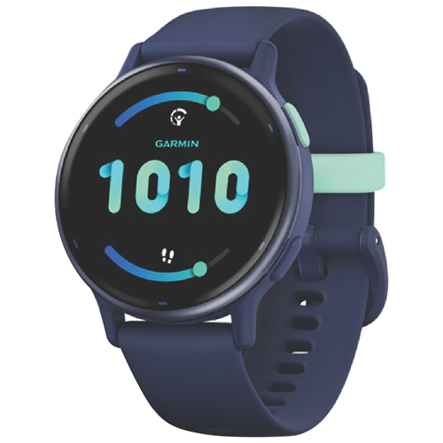 A cutting-edge smartwatch that effortlessly blends health monitoring with style the Garmin Vivoactive 5 in Captain Blue/Blue Metallic is your stylish partner for pursuing total wellbeing. Sporting a vivid 1.2 AMOLED display with optional always-on mode this sleek smartwatch provides at-a-glance access to texts emails calls and more. Built-in GPS lets you accurately track pace distance and intensity during runs rides and swims while the wrist heart rate monitor and pulse ox sensor provide advanced health insights. With Garmin Pay contactless payments on-board music storage and up to 11 days of battery life in smartwatch mode the Vivoactive 5 simplifies your active lifestyle. For those seeking robust health metrics in a fashionable form factor the Vivoactive 5 is the ultimate accessory. The manufacturer's part number for this product is 010-02862-12. Check out the Garmin Vivoactive 5 today.