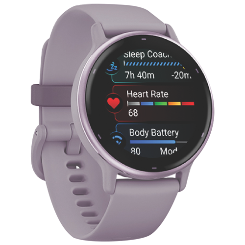 Make your wrists the command center of your active lifestyle with the Garmin Vivoactive 5 smartwatch in stylish orchid and orchid metallic. This sleek smartwatch packs health insights music payments and more into a slim lightweight design with an AMOLED display. Track your energy levels Pulse OX heart rate sleep and stress 24/7. Built-in GPS lets you accurately map runs rides and more. Safety features include incident detection and an assistance button to alert emergency contacts. Pay for purchases right from your wrist. Get convenient smartphone notifications. The battery lasts up to 11 days in smartwatch mode or 5 days with the display always on. Swim-proof and ready for any adventure the Vivoactive 5 is your daily companion to elevate your health and enhance your life. Customize your smartwatch with thousands of free watch faces apps and more from the Connect IQ store. The manufacturer's part number for this product is 010-02862-13. Check out the Garmin Vivoactive 5 today.