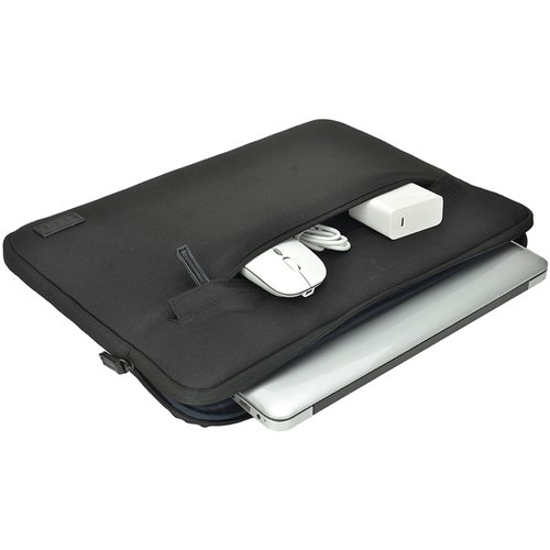 This sleek Generation Earth 15.6 recycled laptop sleeve provides a sustainable way to protect your device on the move. Crafted from 900D recycled polyester estimated to be made from 11 plastic bottles this eco-conscious sleeve lets you make a difference with your daily commute. The quick storage front zipped pocket allows easy access to your accessories while the main compartment fits most 15.6 laptops. With its black colourway and 1 year warranty this laptop sleeve makes going green a stylish choice. The manufacturer's part number for this product is EVR093. Discover the difference recycled accessories can make today.