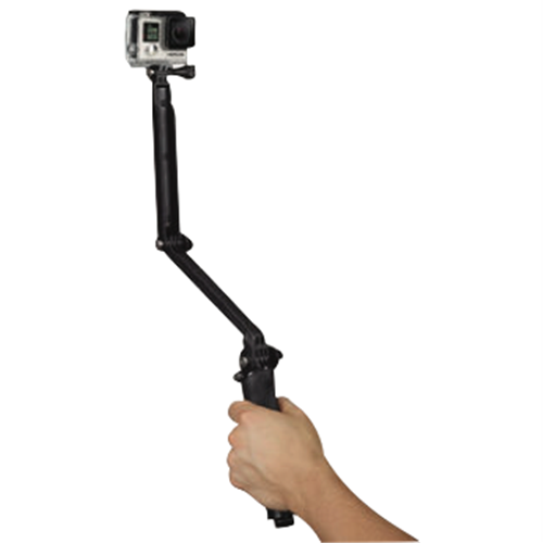 This ultra versatile mount can be used three main ways: as a camera grip extension arm or tripod. The folding arm is perfect for POV or follow-cam footage and makes it easy to capture selfies without the mount appearing in the shot. When detached from the arm the handle doubles as a camera grip. Stored inside the handle is a lightweight mini tripod that can be removed and used on its own or combined with the handle. Expands to 20 (50.8cm) collapses to 7.5 (19cm).