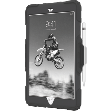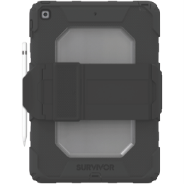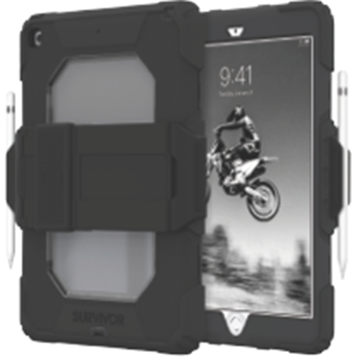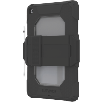 Survivor designed and rigorously tested Survivor All-Terrain to be the most protective case possible for whatever your day has in store. Built from the inside out to meet or exceed the standards published in US Department of Defense MIL-STD-810G Survivor All-Terrain protects your tablet from extreme conditions including drops dust sand rain impacts vibration and a host of other environmental factors. Survivor All-Terrain's 4 layers of protection include a foam-lined shatter-resistant polycarbonate frame clad in rugged shock-absorbing silicone. A built-in screen protector snaps on to seal your touchscreen from the outside environment. Hinged plugs seal the Lightning connector and headphone port while control buttons are covered by flexible silicone. And to make it easy to use hands-free a detachable stand is included.