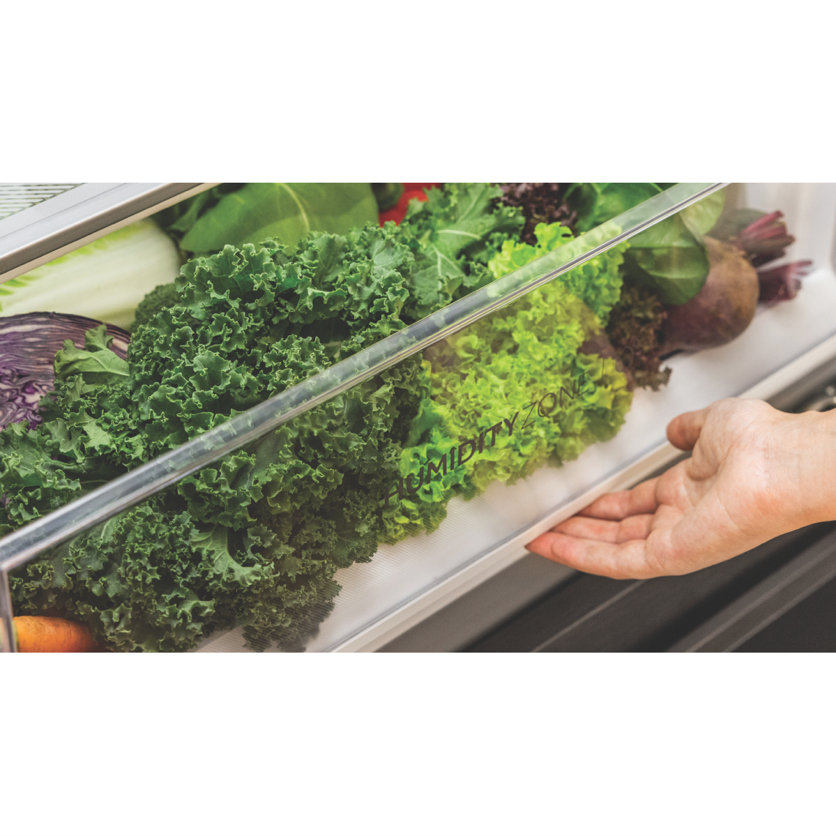 • Humidity Zone, Multi-Zone Air, Super Freeze, fingerprint resistant finish
