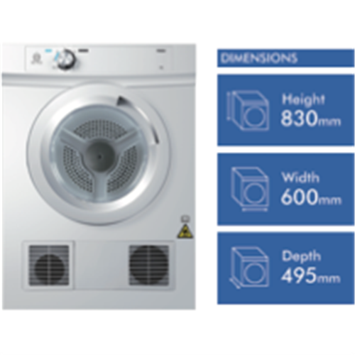 Take charge of your laundry with the 2 star energy rated Haier 4kg Sensor Dryer. This vented dryer features sensor drying technology to automatically detect moisture levels ensuring your clothes are dried to perfection. With 7 drying programs including Normal Dry Air Dry and adjustable dryness levels you'll find the right setting for all fabrics. The transparent door lets you monitor drying progress while reverse tumble action prevents clothes tangling. Wall mountable design allows flexible installation. Front and rear venting easy access lint filter and stacking bracket make laundry simple. With 600mm width 830mm height and 495mm depth this dryer is sized for small loads. Vivid white finish blends into any decor. Quiet yet powerful drying in a compact appliance. The manufacturer's part number for this product is HDV40A1. Reduce your energy bills and make laundry effortless with the Haier 4kg Sensor Dryer.