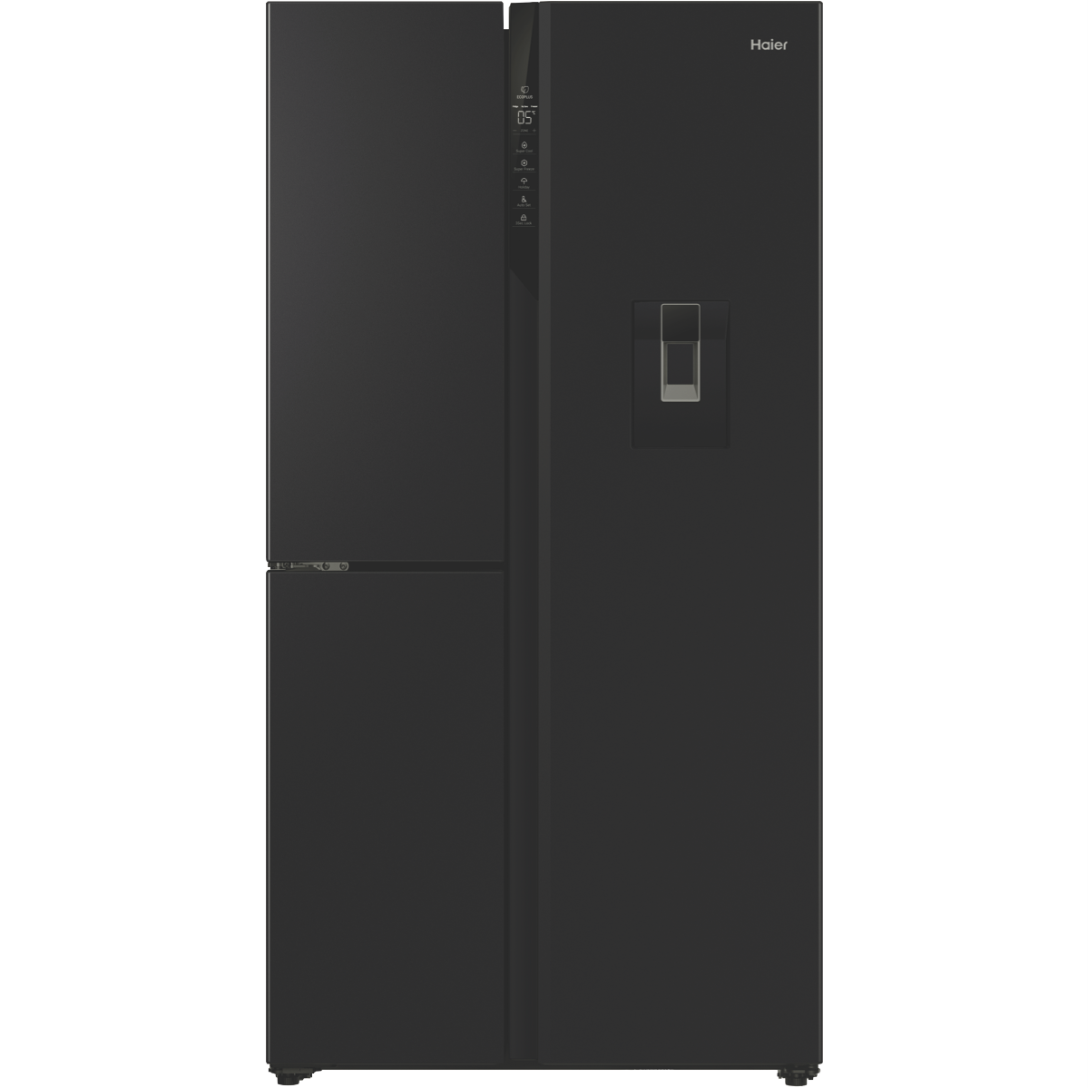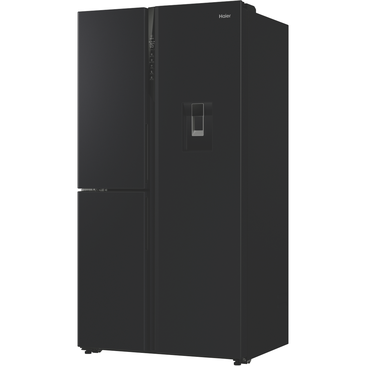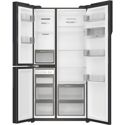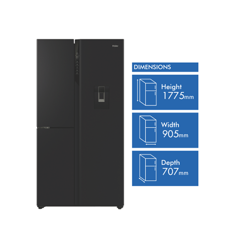 With 574 liters of spacious capacity this black Haier side by side fridge is the perfect fit for any family's needs. The HRF575XHC features a generous 385L fridge compartment and an 86L freezer providing ample room to store all your fresh foods and frozen favorites. Dual doors give easy access to both fridge and freezer while the sleek black finish adds modern style to your kitchen. Stay hydrated with the convenient water dispenser that doesn't require plumbing. Multi-zone cooling and humidity control ensure optimum conditions for preserving food freshness and quality. Enjoy the flexibility to adjust fridge and freezer temperatures to suit your needs with the innovative Switch Zone feature. Rated 4 stars for energy efficiency this fridge helps lower your energy bills while still providing outstanding refrigeration performance. Backed by Haier's 2 year warranty for added peace of mind. With stylish looks family-sized capacity and handy features like the water dispenser this Haier side by side fridge makes refrigerator convenience a breeze. The manufacturer's part number for this product is HRF575XHC. Seize the savings and purchase this exceptional fridge today!