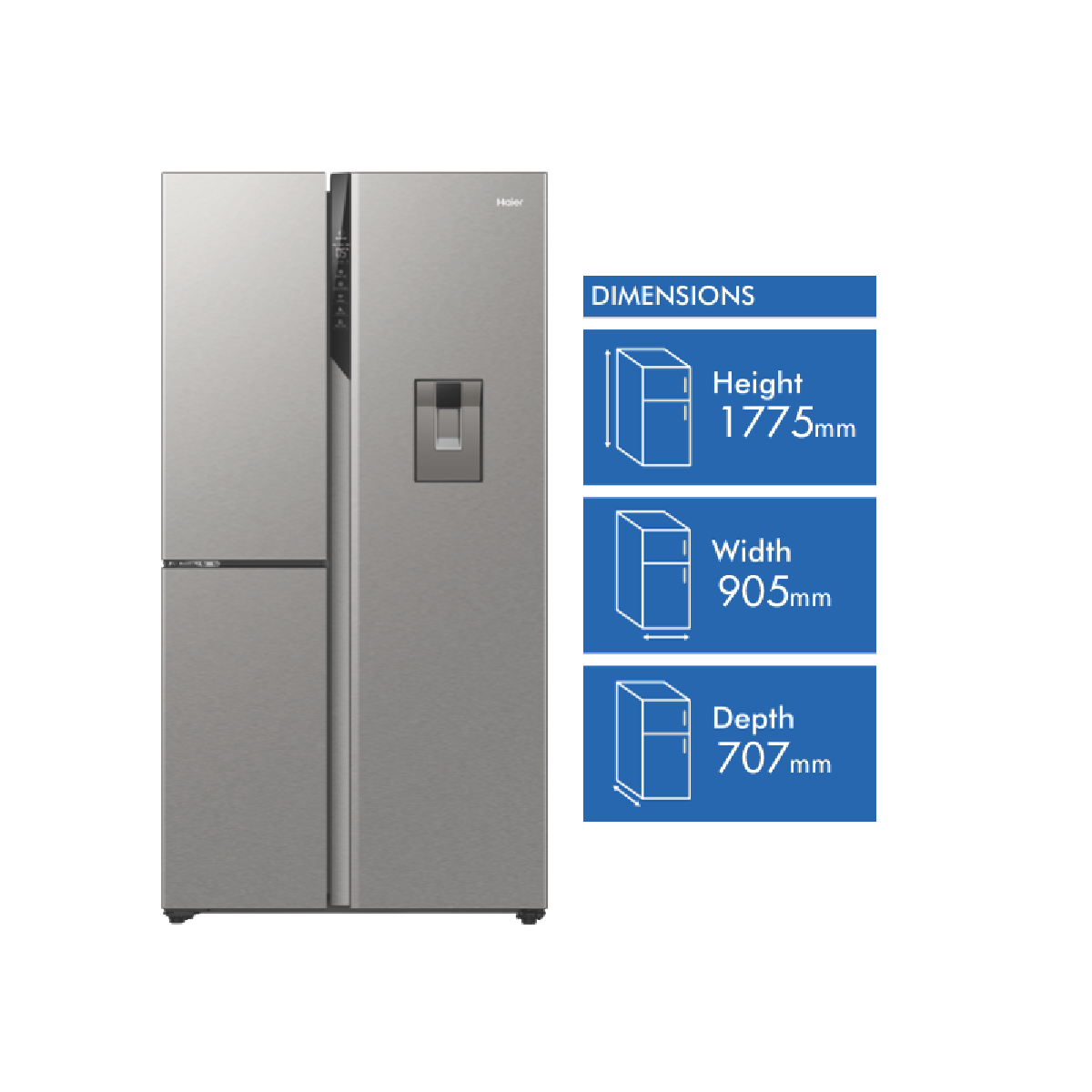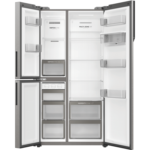 Make room for all your fresh and frozen favorites with the spacious Haier 575L side by side refrigerator. This sleek satin silver fridge packs an impressive total capacity split between a roomy 385L refrigerator and 86L freezer so you can stock up on everything your household needs. The triple door hinge and fixed doors ensure convenient access without compromising on storage space. With its energy efficient 4 star rating this fridge helps lower your energy bills while keeping food fresh for longer. The multi-zone air cooling system maintains optimal humidity and temperature control in both fridge and freezer compartments. The water dispenser eliminates the need for plumbing installation. Flexible storage options like the switch zone allow you to convert freezer space to fridge space to accommodate different food types. This Haier refrigerator makes an excellent addition to any modern kitchen. Rest assured with the 2 year manufacturer's warranty. The manufacturer's part number for this product is HRF575XHS. Discover how this refrigerator can meet your household's storage needs today.