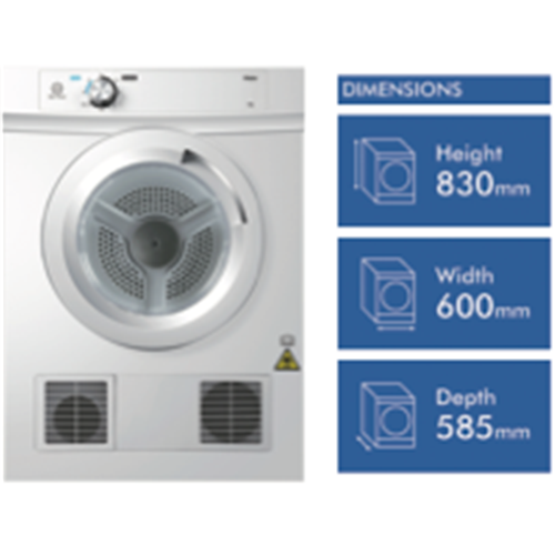 Banish laundry days with the Haier 6kg Sensor Dryer. This vented clothes dryer features intelligent Sensor drying technology that automatically adjusts drying time and temperature for optimal results. With 7 versatile programs including Air Dry Normal Dry and customizable time settings from 30 to 180 minutes you can gently dry everything from delicates to bulky bedding. The reverse tumble action prevents tangling while the warm or cool temperature options ensure customized care for all fabrics. Compact yet powerful this 600mm wide dryer delivers 6000ml capacity in a slim wall-mountable design. The sleek white finish adds simple elegance to any space. Save time and energy with features like auto drying sensor small load setting and stacking bracket for pairing with a Haier washer. Quiet and efficient this dryer provides 2-star energy rating for cost savings.Bring intelligent drying and care to your laundry days with the Haier Sensor Dryer. The manufacturer's part number for this product is HDV60A1. Learn more about its convenience today.