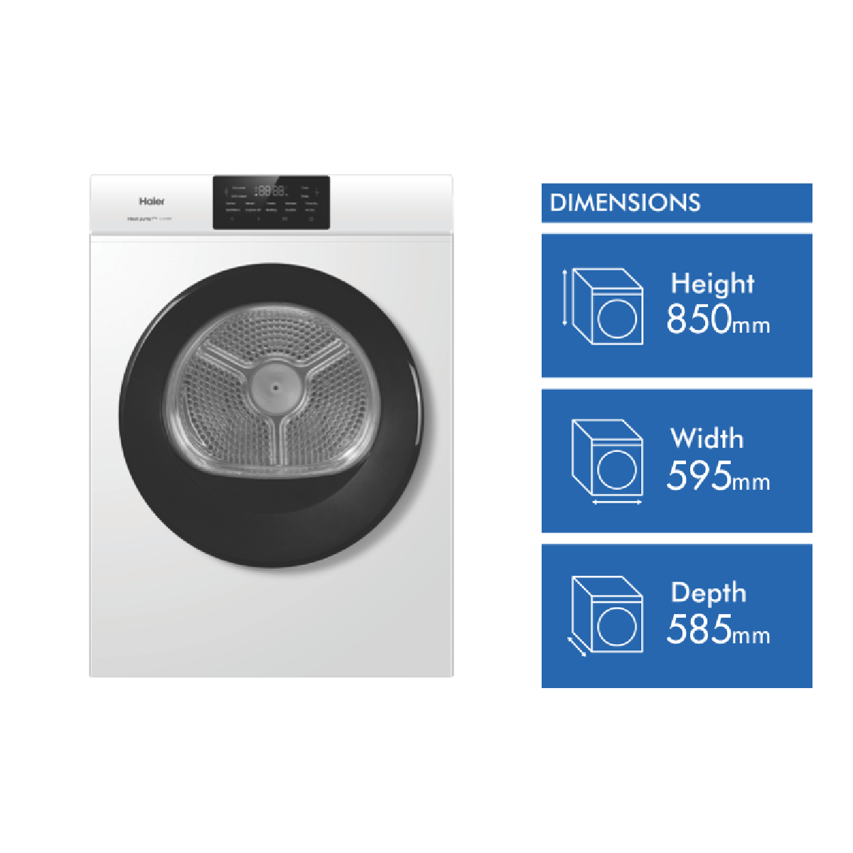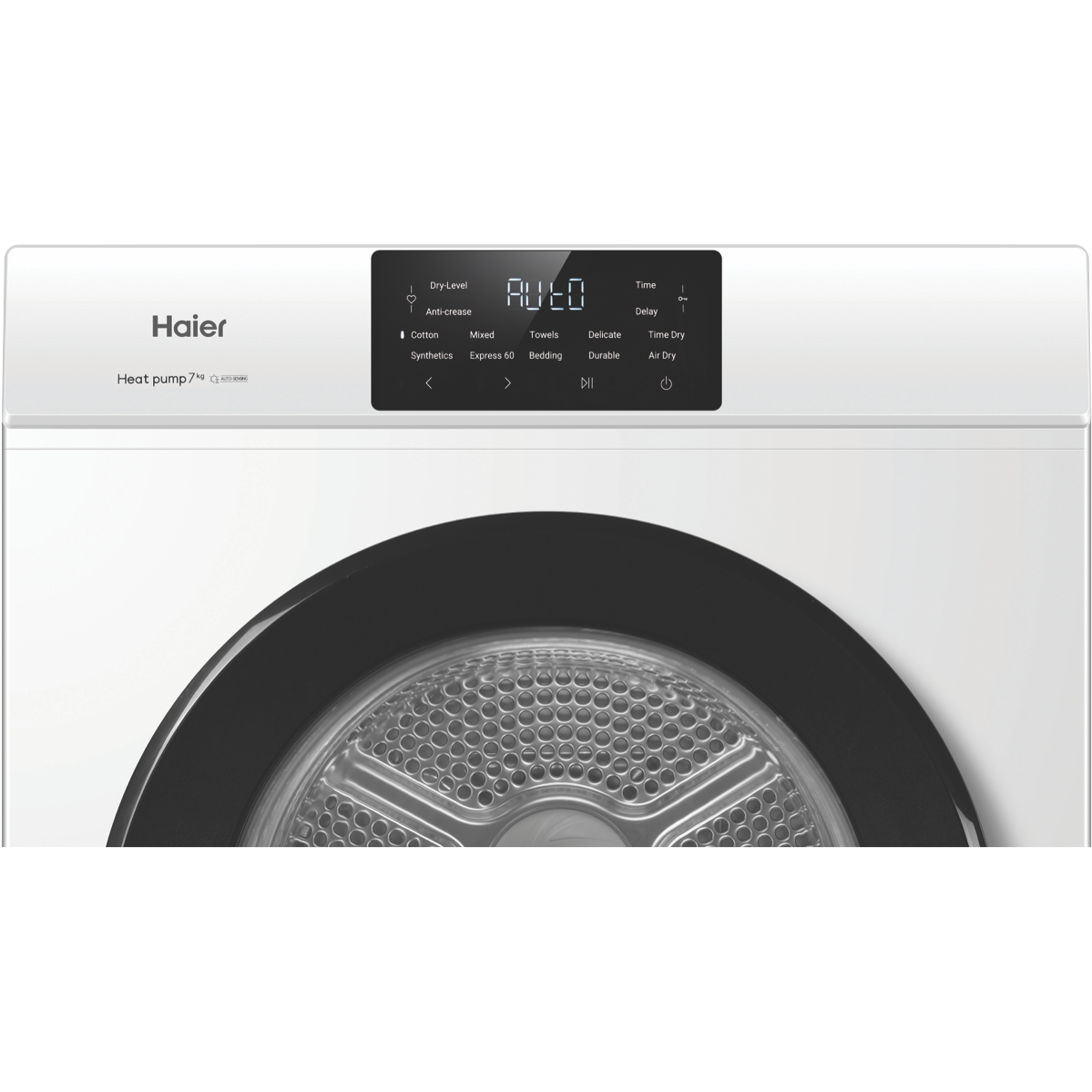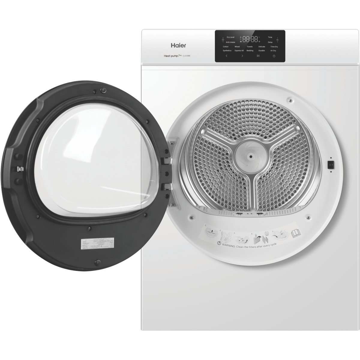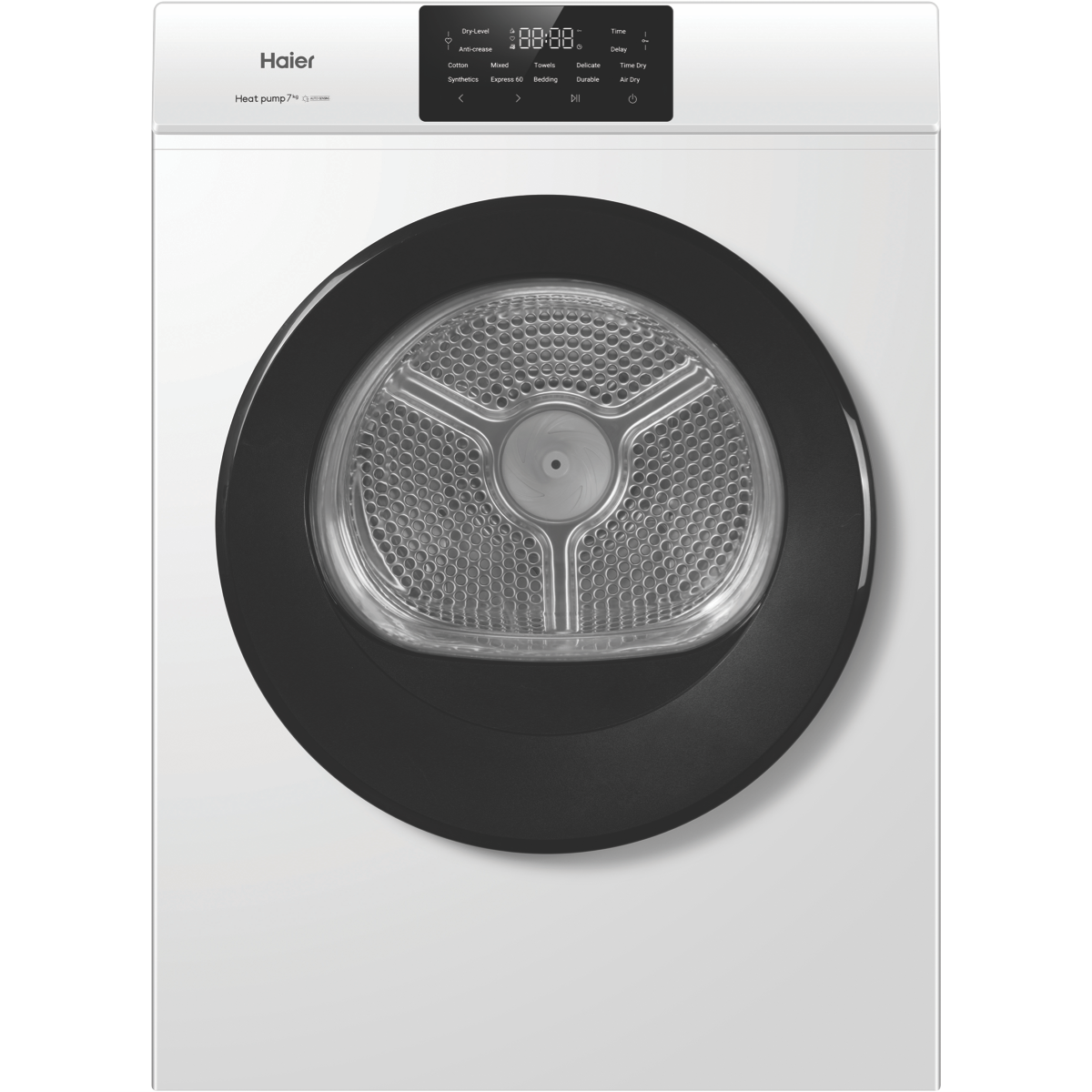 The Haier 7kg Heat Pump Dryer offers efficient and gentle drying for your laundry needs. With its impressive 7 star energy rating this heat pump clothes dryer helps you save on energy costs while delivering exceptional drying performance. The 7kg drying capacity is perfect for medium-sized households accommodating a variety of clothing items and bedding. Boasting 10 drying programs including Air Dry Bedding Cottons Delicate Mixed Synthetics Durable Express 60 Time Dry and Towels this Haier dryer provides flexible options to suit different fabrics and drying preferences. The 3 dryness levels - Damp Dry and Extra Dry - allow you to achieve the desired level of dryness for your laundry. Featuring sensor drying technology this clothes dryer automatically adjusts the drying time based on the moisture levels in your clothes preventing over-drying and ensuring energy efficiency. The reverse tumble action minimizes tangling and creasing keeping your clothes looking their best. With a sleek white finish and slimline design this Haier heat pump dryer effortlessly fits into your laundry space. HDHPS70LW1 is the manufacturer's part number for this product. Experience the convenience and efficiency of the Haier 7kg Heat Pump Dryer in your home today.