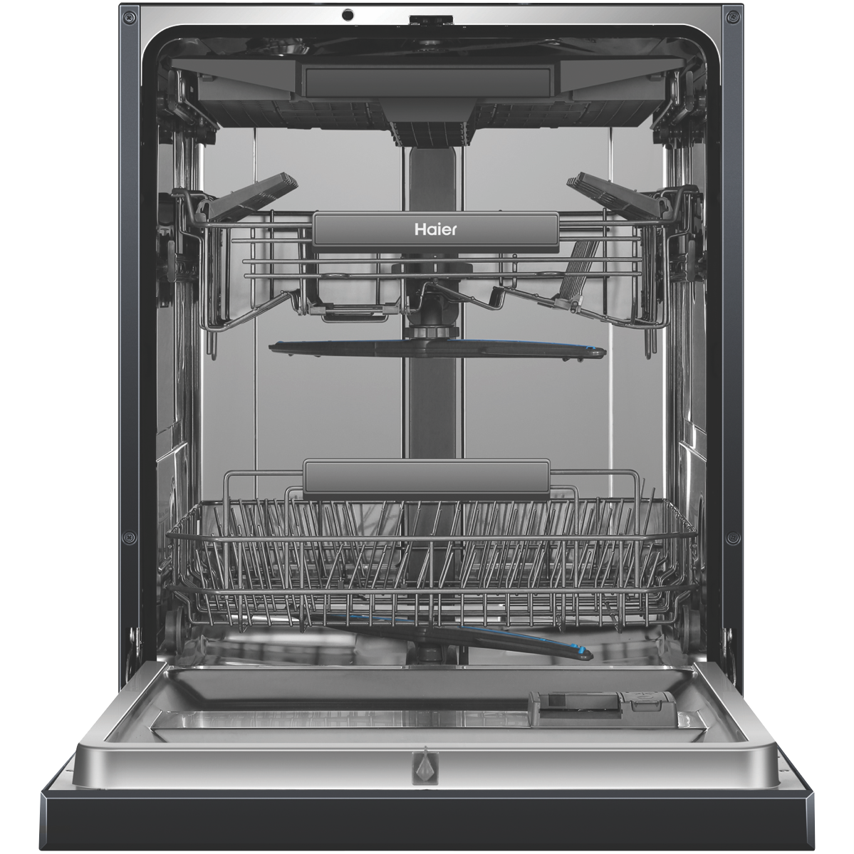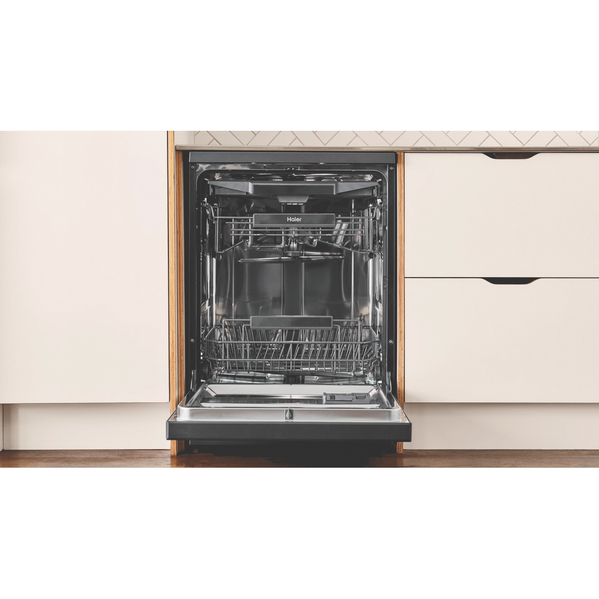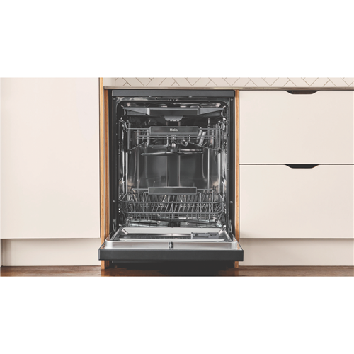 Tired of dirty dishes piling up? The Haier HDW15U3B1 built under dishwasher in sleek black is here to help. With its steam function and 15 place settings you can easily tackle even the toughest messes. The 42 decibel noise level means it won't disrupt your daily life. Plus the 4.5 star energy rating and 5.5 star WELS water rating ensure efficiency. The electronic touch controls and Wi-Fi connectivity with the SmartHQ app make operation a breeze. Measuring 597mm wide 574mm deep and 820-888mm high it fits seamlessly under your counter. Enjoy peace of mind with the 2 year manufacturer's warranty.