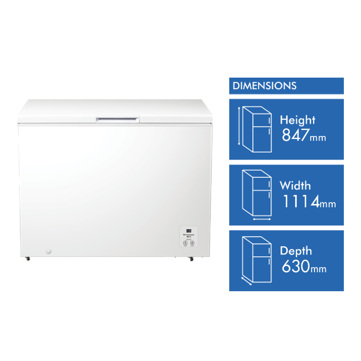 With a spacious 300L capacity the Hisense Hybrid Chest Freezer provides ample storage for all your frozen goods. This versatile appliance can be easily switched between freezer and fridge modes giving you the flexibility to adapt to your changing needs. The boundless door design is not only easy to clean but also features ultrathin hinges that save space and allow for hands-free self-standing access. An adjustable thermostat ensures optimal temperature control while convenient caster wheels make it easy to move the freezer when needed. The included water drain simplifies defrosting and cleaning saving you time and effort. With its sleek white finish and impressive 5.5 star energy rating this Hisense chest freezer is an efficient and stylish addition to any home. HRCF301 is the manufacturer's part number of this product. Take advantage of the generous 3 year manufacturer's warranty for added peace of mind.