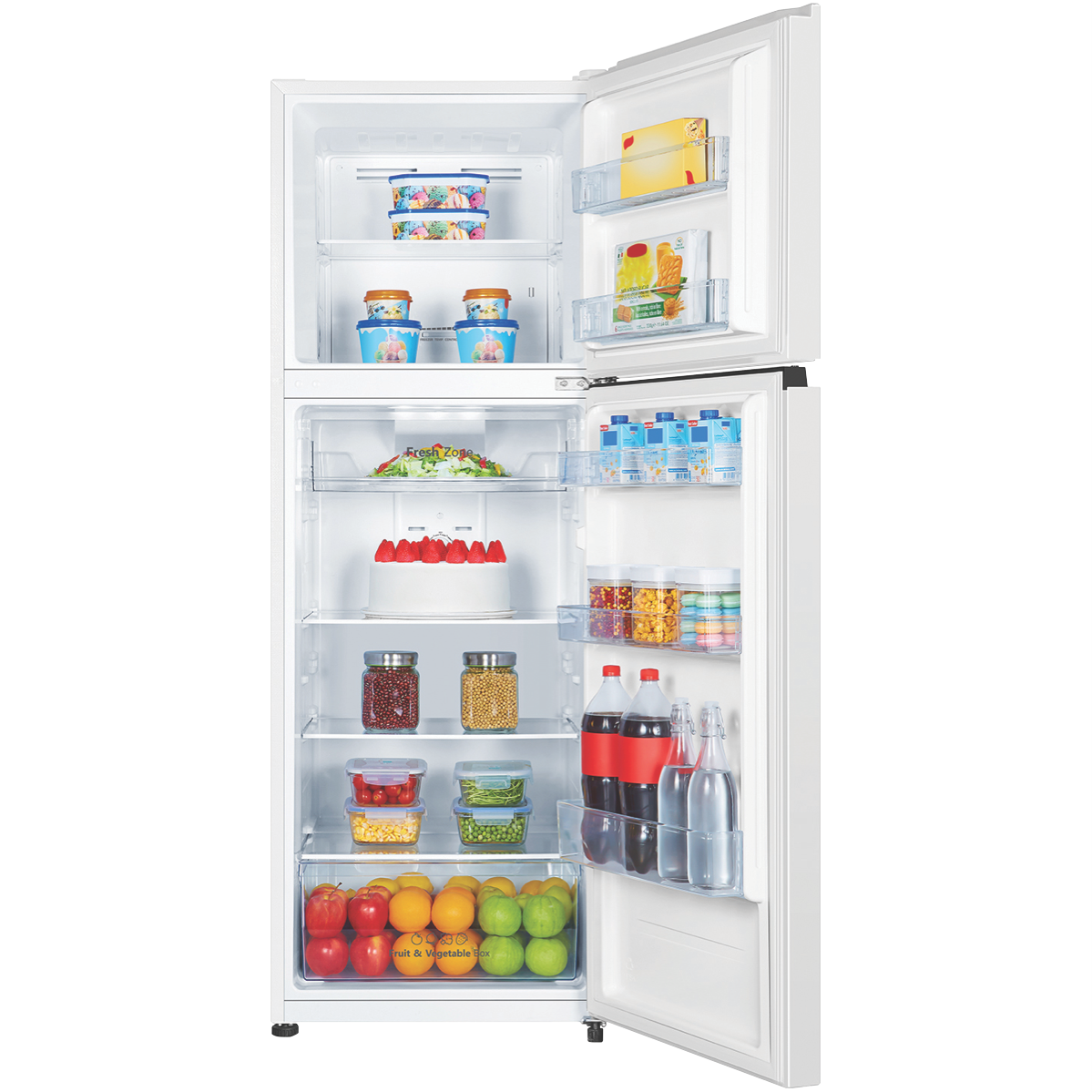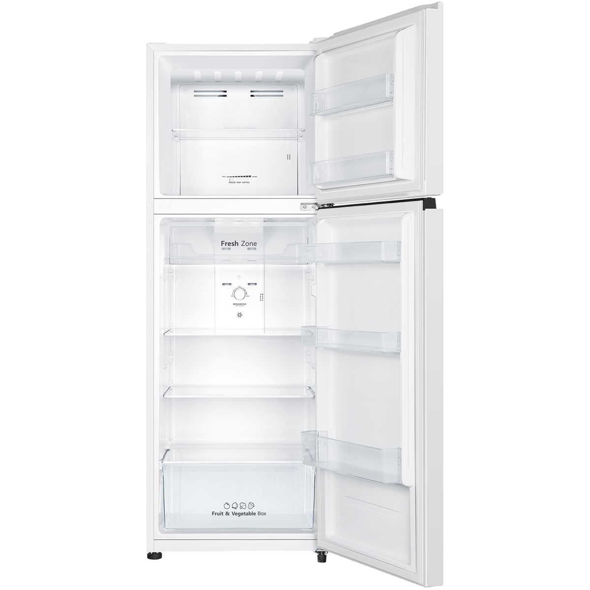 Discover the perfect blend of style and functionality with the Hisense 326L Top Mount Refrigerator. This sleek white fridge offers a generous total capacity of 326L with a spacious 253L fridge compartment and a 73L freezer. Enjoy optimal food preservation thanks to the innovative inverter technology Total No Frost system and Multi Airflow design that ensures even cooling throughout. The seamlessly integrated recessed handles add a touch of elegance while the XXL door balcony provides ample storage space for all your essentials. Keep your meats and fish fresh in the dedicated Fresh Zone compartment. With a remarkable 4.5 star energy rating this top mount refrigerator is both energy-efficient and environmentally friendly. The reversible door hinge allows for flexible installation in any kitchen layout. The manufacturer's part number for this product is HRTF325. Upgrade your kitchen with the Hisense 326L Top Mount Refrigerator and experience the convenience of a well-organized and reliable refrigeration solution.