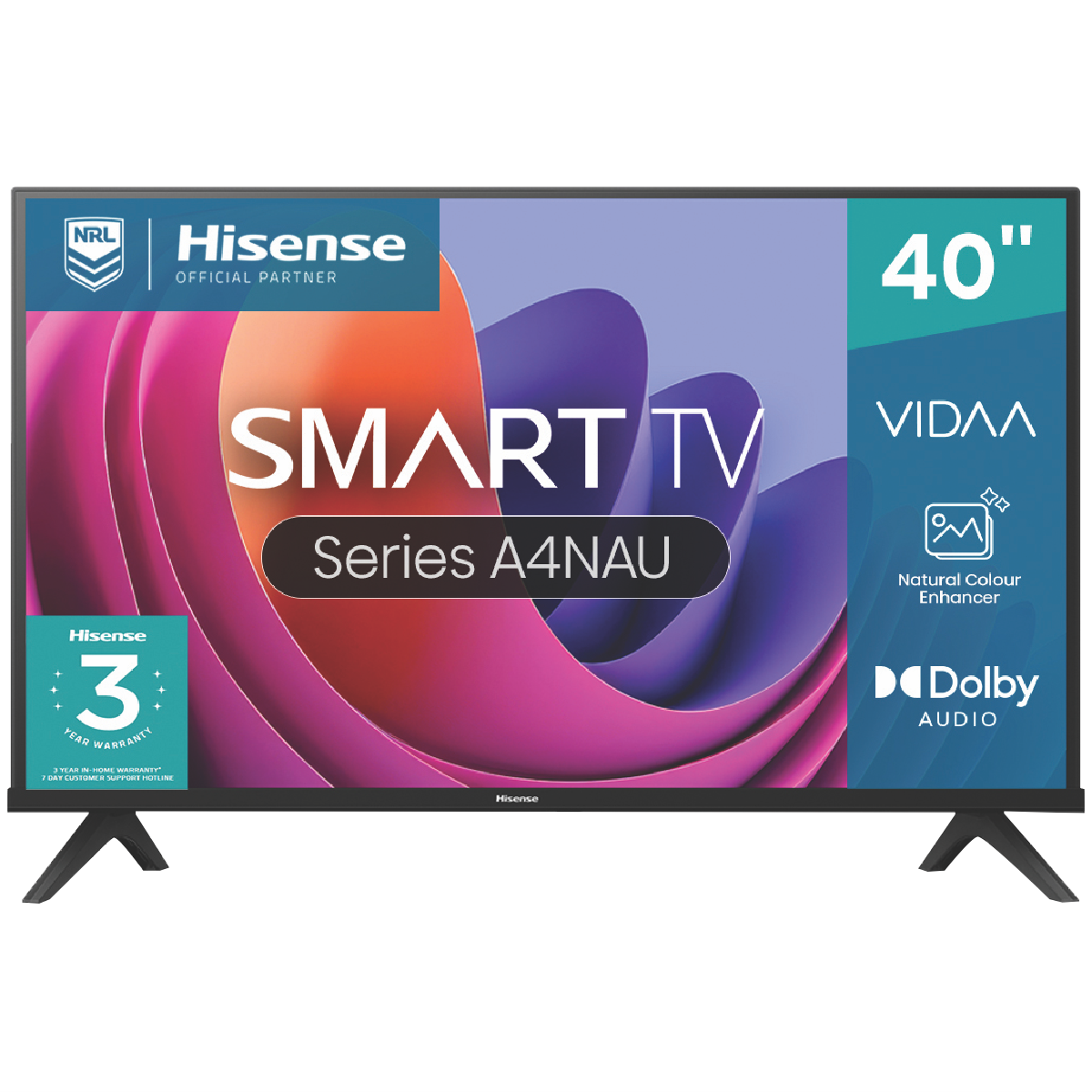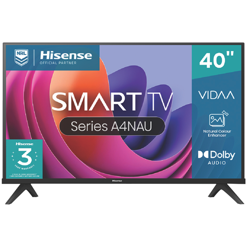 Elevate your home entertainment experience with the Hisense 40 A4NAU Full HD Smart TV. This sleek and stylish LED television boasts a stunning 40-inch display with a Full HD resolution of 1920 x 1080 delivering vibrant colours and crystal-clear images. Powered by a Quad Core Hi View Engine processor and featuring Natural Colour Enhancer technology this smart TV brings your favourite content to life. Enjoy seamless access to popular streaming apps like Netflix Stan Disney+ and more through the intuitive VIDAA U7 platform. Immerse yourself in captivating audio with DTS Virtual:X sound technology creating a cinematic atmosphere right in your living room. With a 60Hz refresh rate and gaming-ready capabilities this television is perfect for both movie nights and gaming sessions. Equipped with 2 HDMI inputs and 2 USB ports connecting your devices is a breeze. The A4NAU series also boasts an impressive 7-star energy rating ensuring energy efficiency without compromising on performance. Measuring 900mm wide 565mm high and 186mm deep this TV fits seamlessly into any room. The manufacturer's part number for this product is 40A4NAU. Backed by a 3-year manufacturer's warranty the Hisense 40 A4NAU Full HD Smart TV is a reliable choice for enhancing your home entertainment setup.