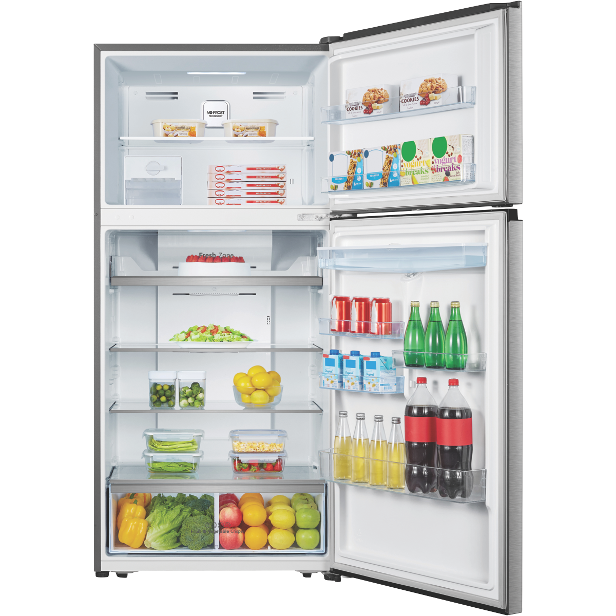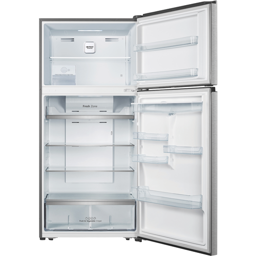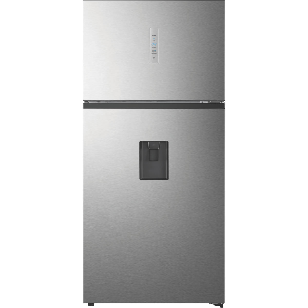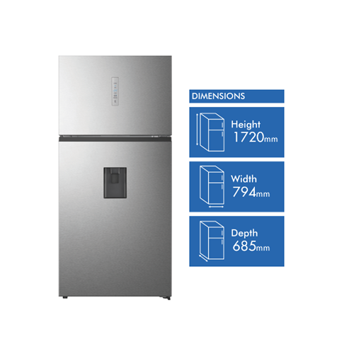 This spacious silver top mount Hisense fridge with brushed steel finish delivers ample storage for the whole family. With a generous total capacity of 496L including 377L refrigerator space and 119L freezer this appliance provides plenty of room for fresh food and frozen items. The right hand hinge and non-reversible door allow for convenient access while the water dispenser enables easy hydration without plumbing required. Adjustable glass shelves large crisper drawers and multi-function touch control panel allow customized storage and temperature control. At 4.5 star energy rating this fridge promotes efficiency. Additional highlights include the 3 year manufacturer's warranty for peace of mind. The manufacturer's part number for this product is HRTF496SW. Discover how this quality top mount refrigerator can upgrade your household's storage and organization today.