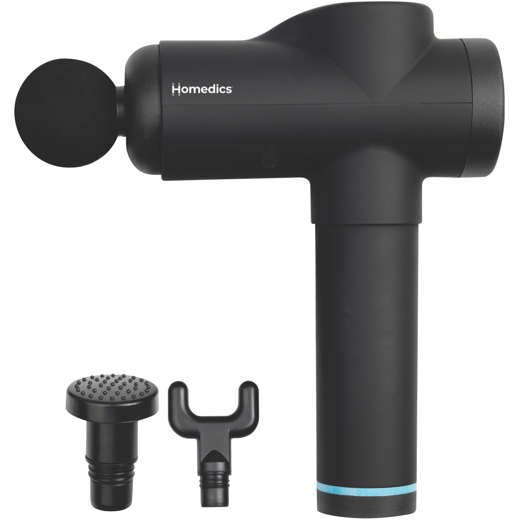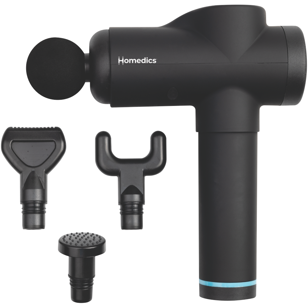 Ease tight muscles and soothe aching joints with the Homedics Percussion Physio Plus Massager. This deep-tissue massager features 4 interchangeable attachments to target different areas of the body. With 3 intensity levels and 30 power levels you can customize each massage session. The ergonomic design allows you to hold and control the massager with ease. The lithium ion battery provides up to 4 hours of run time per charge. Additional features like the invigorating spot massage function make this an advanced therapeutic massager for home use. This Homedics massager comes with 4 interchangeable massage attachments a quick start guide mains charger and 1 year manufacturer's warranty. Bring targeted relief to sore muscles with the Homedics Percussion Physio Plus Massager (PGM-400-AU).