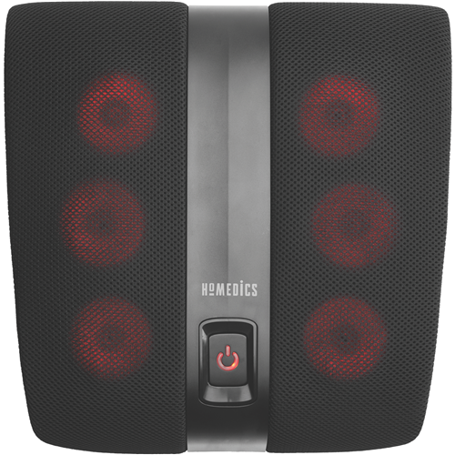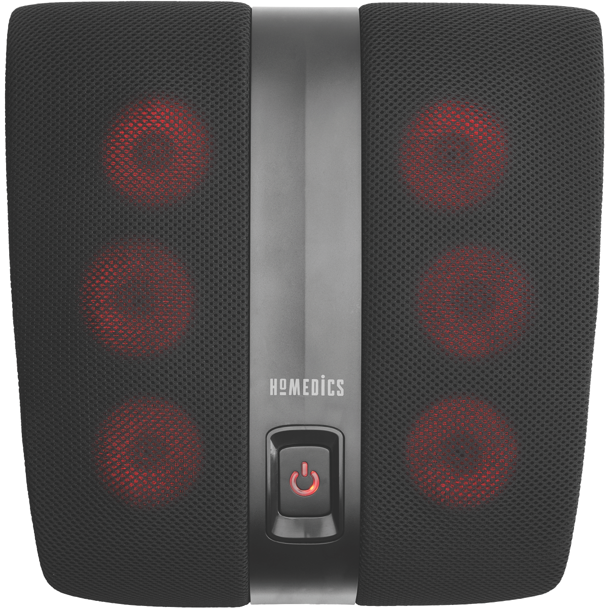 Give your tired feet a soothing massage with the Homedics Triple Action Shiatsu Foot Massager with Heat. This black foot massager provides triple rotational heads to deliver a relaxing Shiatsu kneading massage. The breathable fabric construction surrounds your feet with 6 massage nodes on each foot to gently work away aches. Unwind after a long day with the 12 massage nodes that target pressure points on your feet's reflex zones. Turn on the soothing heat function and let the stress melt away. Easily control the massage with the toe-touch buttons. The Homedics foot massager comes with a 2 year manufacturer's warranty so you can enjoy a revitalizing foot massage for years to come. The manufacturer's part number for this product is FMS-265H-AU. Give your feet some well-deserved TLC and add this foot massager to your cart today.