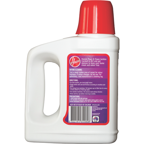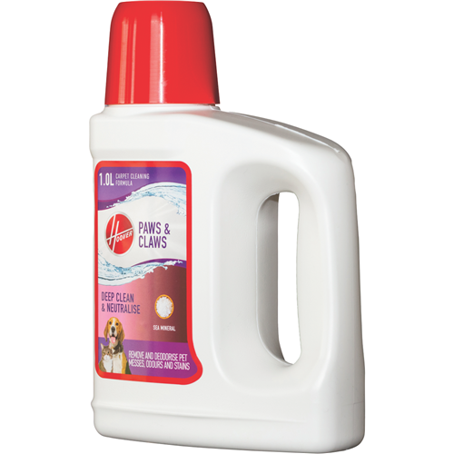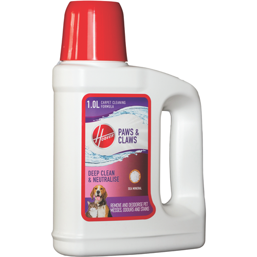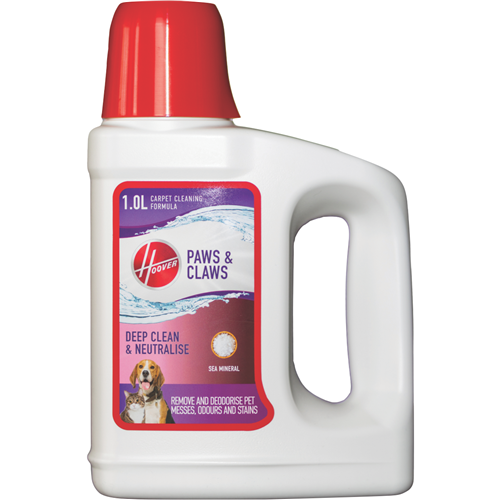 Hoover's Paws & Claws Carpet Solution 1L FPCCS1L22E contain enzymatic cleaning ingredients to help break down pet messes while deodorizing carpets leaving them smelling fresh.