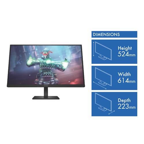 Take gaming to the next level with the HP 27 OMEN UHD 4K Gaming Monitor. The immersive 27 display delivers stunningly detailed UHD 4K visuals with a crisp 3840 x 2160 resolution. Its rapid 1ms response time and 144Hz refresh rate provide buttery smooth gameplay. This gaming monitor is equipped with two HDMI ports DisplayPort and USB Type-C connectivity for versatile setup options. Enhance your gaming experience with the OMEN's impressive 1000:1 contrast ratio and 400 nits of brightness. The 16:9 aspect ratio provides an expansive field of view to see more of the action. Weighing just 7.54kg this super slim sleek monitor measures 446mm in height and 699mm in width for a compact footprint. HP backs this monitor with a 3 year warranty for peace of mind. 780G9AA is the manufacturer's part number of this product. See for yourself how the HP OMEN monitor can take your gaming to the next level.