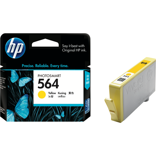 Fill your printer with vibrant yellow ink using the HP 564 Yellow Ink Cartridge. This cartridge is designed for use in various HP Deskjet ENVY OfficeJet and Photosmart printer models including the Deskjet 3070A 3520 B109A B110A B111A B209A B210 Pro B8550 Pro B8553 and more. With the ability to print up to 750 pages you'll be able to create stunning colour documents photos and projects without interruption. The quick-drying smudge-resistant ink produces sharp text and vivid colour output. Replenish your yellow toner supply and continue printing quality pages for work home and everything in between. HP designs this cartridge for easy snap-in replacement and mess-free handling. The manufacturer's part number for this product is CB320WA. Shop now and refresh your printer's capabilities.