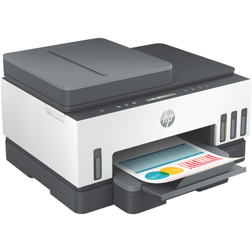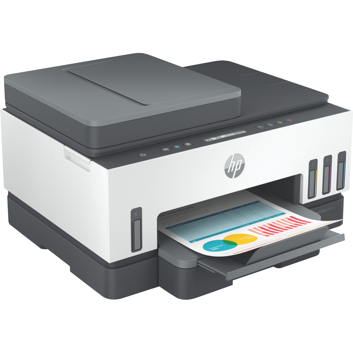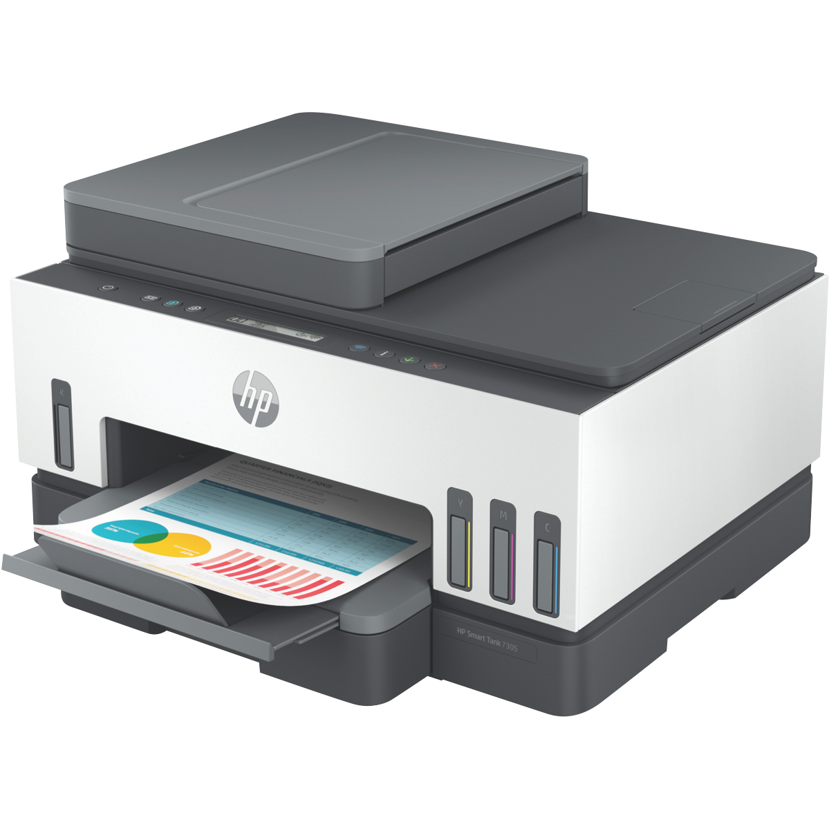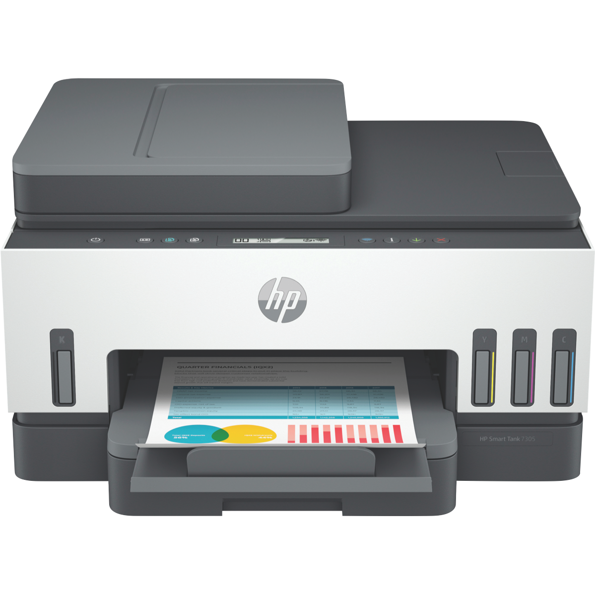 Streamline your home office with the versatile HP Smart Tank 7305 All-in-One Printer. This powerful inkjet printer lets you print scan and copy documents and photos with ease. With automatic double-sided printing you can save on paper costs while producing professional two-sided handouts flyers and brochures. Built-in wireless and Bluetooth connectivity offers cable-free printing from your smartphone tablet or computer. The 250-sheet input tray and 100-sheet output tray provide ample paper capacity for high-volume jobs. Bring your projects to life with print resolutions up to 1200 x 1200 dpi in black and white and 4800 x 1200 optimized dpi in color. Print speeds reach 15ppm in black and white and 9ppm in color. The auto document feeder makes scanning and copying multi-page documents a breeze. Edit and enhance photos before printing directly from the 2.7 touchscreen. Designed for efficiency this all-in-one printer can help maximize your productivity. Print affordably with the HP Smart Tank that enables up to 2 years of ink in the box. Built to handle high monthly print volumes up to 1500 pages this workhorse printer offers the performance and reliability essential for any home office or small business. The intuitive HP Smart app lets you easily print scan and manage your printer from your mobile device. Bring professional quality and wireless convenience to your home office with the versatile HP Smart Tank 7305 All-in-One Printer. The manufacturer's part number for this product is 28B75A.