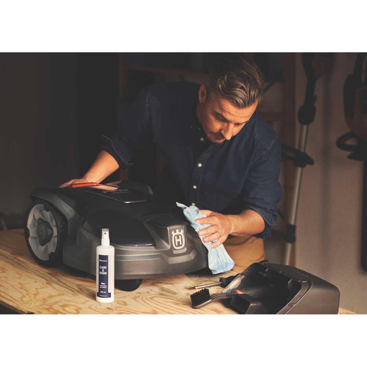 Keep your Automower in top condition with the Husqvarna cleaning and maintenance kit.