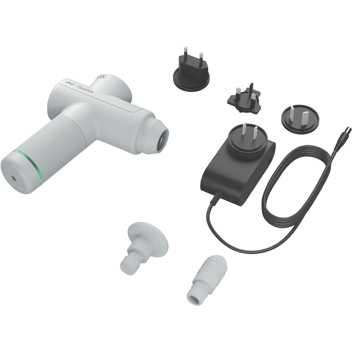 The ultimate portable percussion massager. Lightweight versatile and sleekly designed it offers relief on-the-go massaging away stress and tension loosening muscle knots and targeting fatigue. It s more than just an ordinary massage gun it s designed for go-getters like you to help you do what you love more. The Hypervolt Go 2 makes your body feel like new. Warm-up fast release stress and tension and unlock tight muscles wherever your life takes you. Just a few minutes a day will help you feel revived and find your full range of motion. At only 680 grams it fits perfectly in your bag and sits beautifully in your home. With 3 hours of battery life per charge and patented QuietGlide® technology for hyper-quiet sessions the Hypervolt Go 2 balances power and portability for a deeply satisfying massage. The Hypervolt Go 2 has a sophisticated design that looks good and feels good. It is built to last with high-quality materials intuitive ergonomics and a modern arctic-grey finish. Being portable and always on-call whether you're at work or working from home at the gym or trailside on your run Hypervolt Go 2 helps you move better and do more. Hyperice's expertise in scientifically engineering the perfect combination of power speed and massage depth make the Hypervolt Go 2 the ideal substitute to a massage therapist - there's a reason why Hyperice is the Official Recovery Technology Partner of choice for many of the worlds leading professional sports organisations including the NBA MBL PGA TOUR UFC and Ironman
