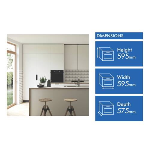 Additional Features Cavity cooling system, Oven ventilation system, Chrome side racks with 5 shelf positions, Three interior lights, Triple layered cool touch glass door, Telescopic runners, Easy to remove inner door glass