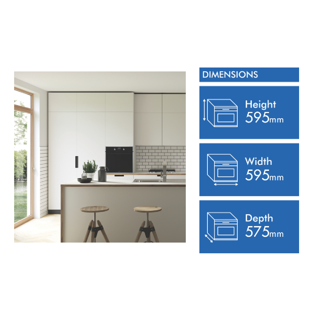 Accessories Included Enamelled baking tray, Chrome baking tray insert, Chrome shelf with safety lock