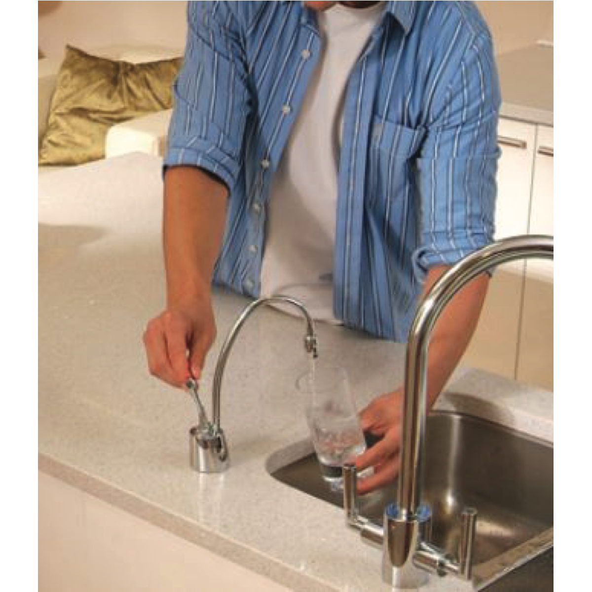 Enjoy instant access to chilled and near-boiling water right from your kitchen sink with the Insinkerator Steaming Hot/Cold Water Tap. This chrome tap is designed to suit your busy lifestyle giving you on-demand hot running water at 98 degrees and cold refreshing drinking water while filtering out any chlorine lead and unpleasant tastes or odours. This two-lever dispenser 20060 helps simplify your day-to-day kitchen tasks from preparing hot and cold beverages speeding up meal preparations to cleaning dishes and leaving them spot-free. This elegant hot/cold water tap is ideal for the modern kitchen.