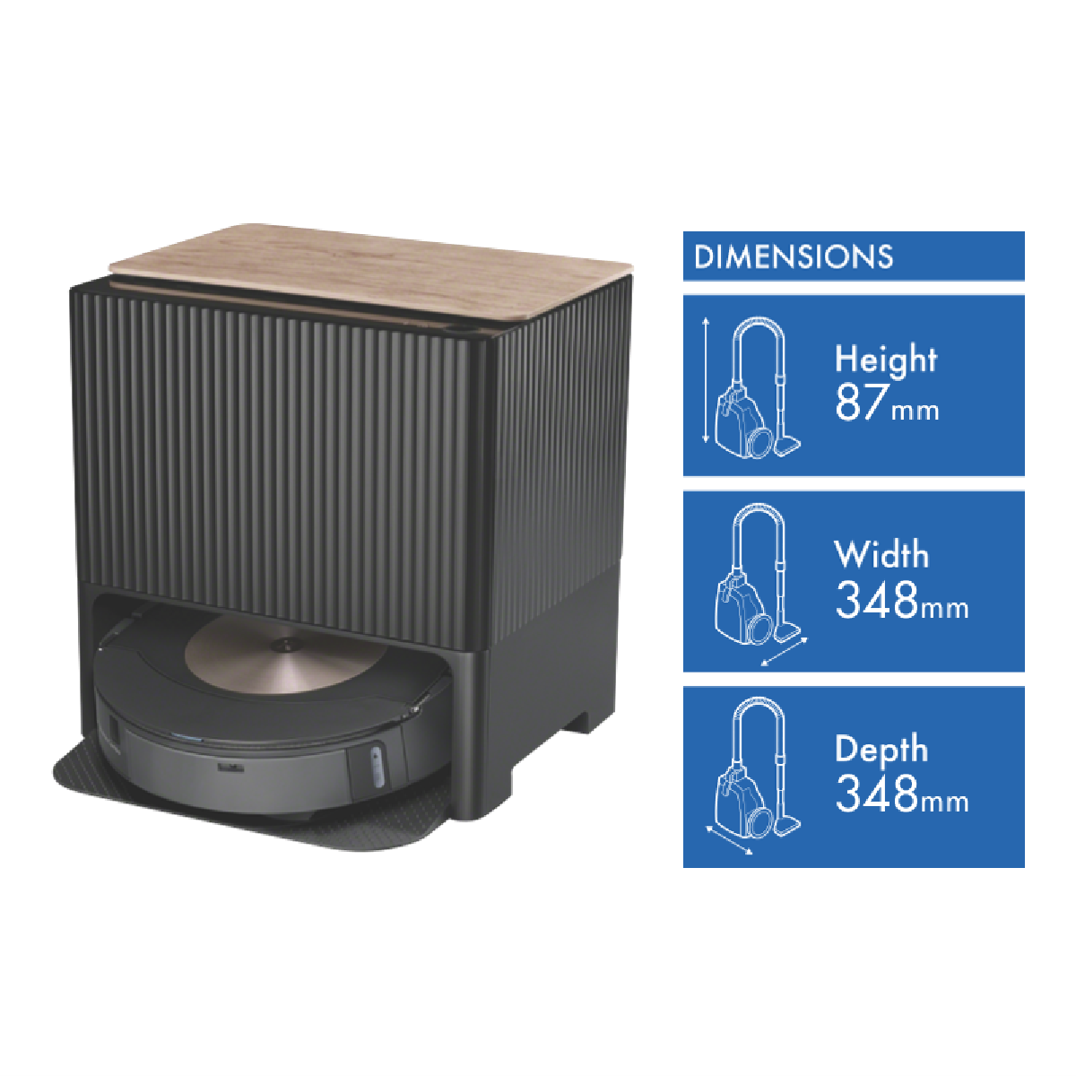 iRobots most powerful vacuuming and mopping The Roomba Combo(TM) j9+ tackles dirt wherever it hides using innovative dual rubber brushes and Edge-Sweeping brush for walls and corners 100% stronger suction power(1) and powerful scrubbing action. The Clean Base(R) Auto-Fill Dock empties 60 days of debris and refills the robot's tank for up to 30 days so you can enjoy truly hands-free cleaning for longer. With D.R.I (Dry Rug Intelligence) and the Auto-Retract Mopping System you can trust your Roomba Combo(TM) j9+ robot vacuum and mop to keep your rugs dry. Dirt Detective powered by iRobot OS learns from cleaning history so your robot can automatically prioritise rooms adjust suction and the number of cleaning passes. With SmartScrub your Roomba Combo(TM) robot imitates real mopping passing back-and-forth with downward pressure to tackle messes. Detects and avoids objects in it's path like shoes socks pet bowls and cords. Pair Roomba Combo(TM) j9+ robot vacuum and mop with Alexa Siri or Google Assistant- enabled devices(2) to get cleaning in command. With enhanced maps cleaning schedules and intuitive smart home integrations the iRobot Home App gives you ultimate control over your clean.Disclaimers: (1)Compared to Roomba Combo i Series Robots (2)Works with Alexa Siri or Google Assistant-enabled devices Alexa and all related logos are trademarks of Amazon.com or its affiliates. Google or Google Home are trademarks of Google LLC. Siri is a registered trademark of Apple Inc registered in the US and other countries and regions.