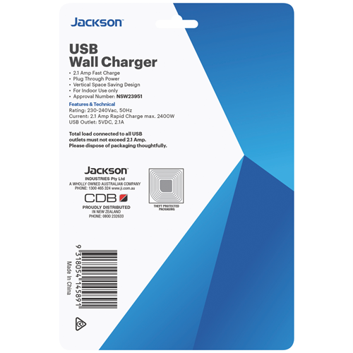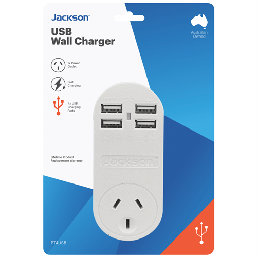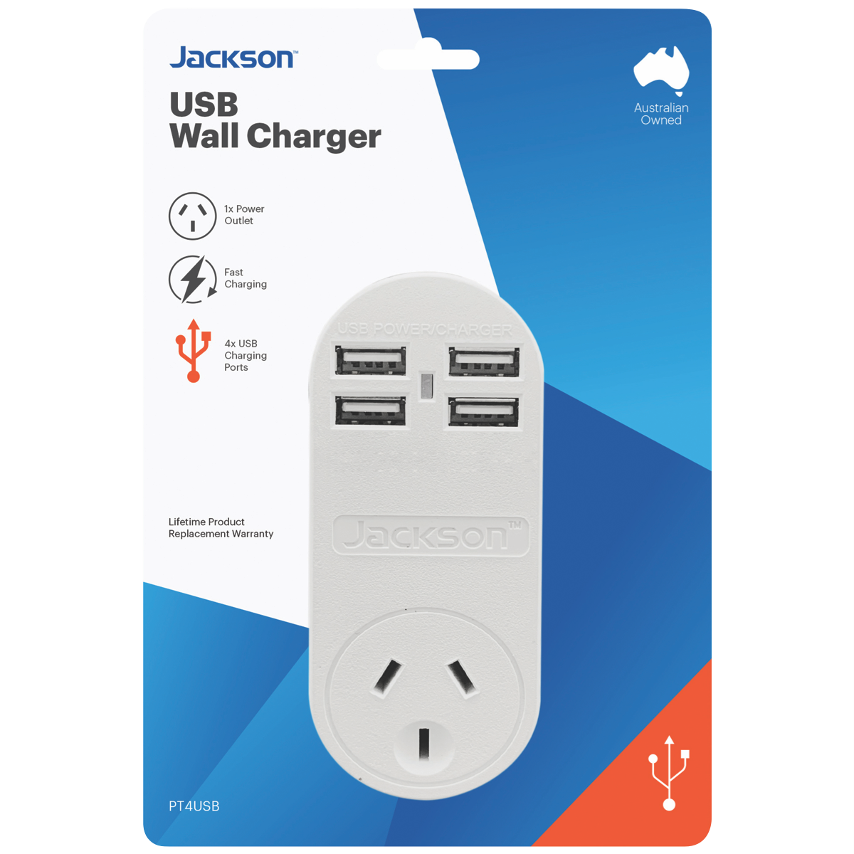 Jackson 4 USB Charger with Mains Power Outlet 1 Amp