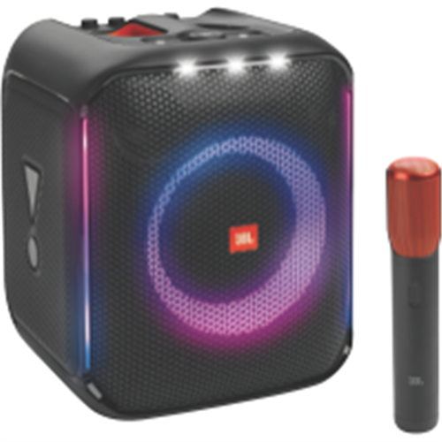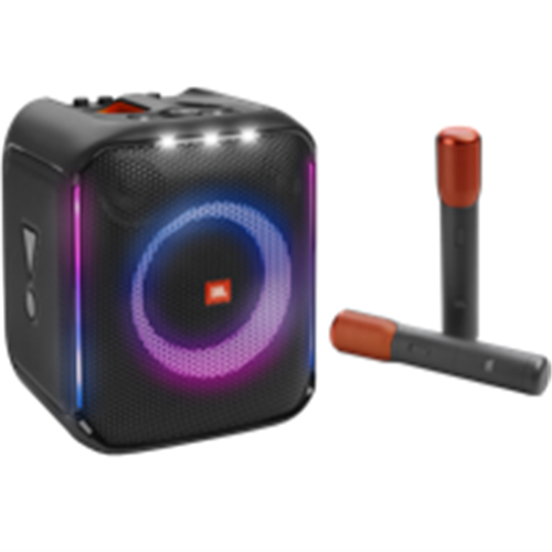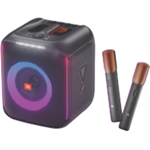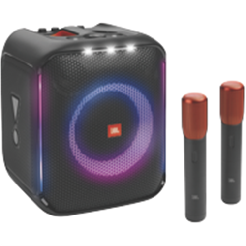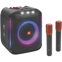 With powerful sound and wireless freedom the JBL Encore Partybox portable Bluetooth speaker takes your parties to the next level. This splashproof speaker pumps out 100W of room-filling audio so you can keep the music going all night long. Connect via Bluetooth and take turns on the wireless mics with friends. With up to 10 hours of battery life this portable party machine has the stamina to outlast even the wildest shindig. The JBL Encore Partybox speaker features a lightweight compact design in a stylish black color. Measuring just 327mm x 276mm x 293mm and weighing only 6.3kg it's easy to take the party anywhere. Don't be fooled by its portable size - this speaker delivers JBL's signature sound with deep bass and clear highs across a wide frequency range. The included wireless microphones make it easy to liven up any party. Sing make speeches or announcements at get-togethers and events. IPX4 splashproof rating means you can rock out in the pool or beachside worry-free. With the JBL Encore Partybox portable Bluetooth speaker you've got the ultimate party companion. Liven up any occasion with powerful wireless sound and fun karaoke action. The manufacturer's part number for this product is 5468777. Check it out today and take your parties to the next level.