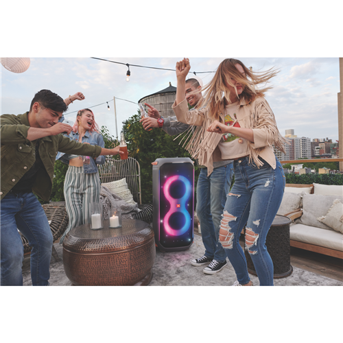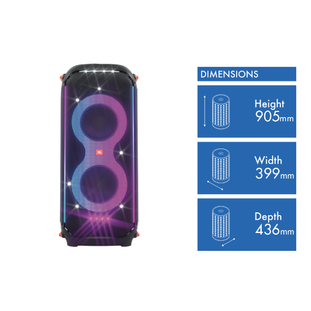 Bring the party home with the powerful JBL Partybox 710 pumping out 800 watts of pure sound bliss. This party speaker packs a punch with its booming woofers and crisp tweeters filling any room with JBL's signature pro sound. Guitarists and singers will love plugging into the handy mic and guitar inputs. Just pair two Partybox 710s for a mammoth stereo setup via Bluetooth 5.1. With a sturdy build easy-grip handle and smooth wheels the 27.8kg Partybox 710 is designed for transporting the party wherever you go. The manufacturer's part number for this product is 5200630.