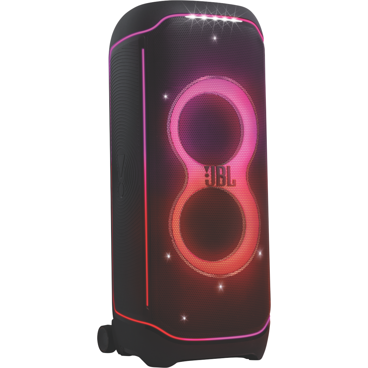 The JBL PartyBox Ultimate fills as much space as you ve got with superior Original JBL Pro Sound boosted with an immersive Dolby Atmos experience over Wi-Fi*. Because everyone at a party loves powerful sound whether they re showing out on the dance floor or vibing on the sidelines. Along with sound that s crystal clear even at its loudest your guests will thrill to a huge breathtaking lightshow of captivating starry lights cool light trails and strobe effects all moving in sync with your beat.