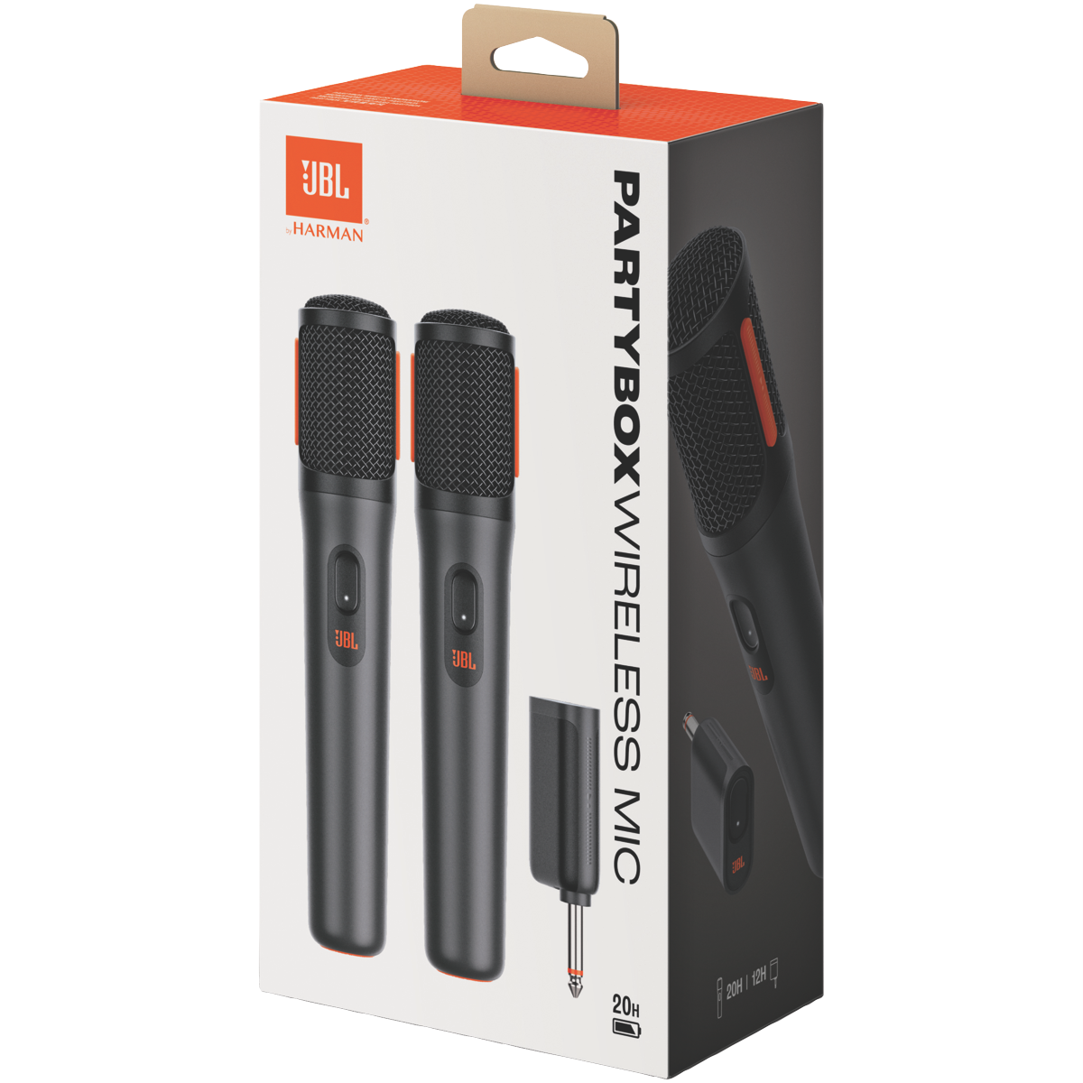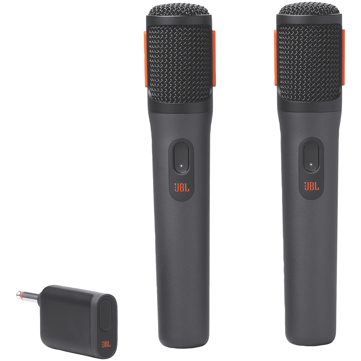 It s time for you to take center stage. JBL wireless mics deliver JBL Original Pro Sound with crystal clear vocal clarity and detail. Sound your best and hit the high notes with no distortion or delay. Just plug the wireless dual-channel receiver into your speaker turn on the mics and you re ready to shine. Easy replaceable AA batteries so you can belt every note until the sun comes up. Time for a duet? You ll hear both mics blended perfectly through your speaker. Get ready for the spotlight