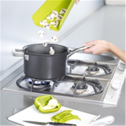 This Joseph Joseph Chop2Pot Plus chopping board cleverly folds when the handle is squeezed so you can conveniently chute down chopped veggies straight into a heated pot! This durable 'living-hinge' technology makes dinner prep nice and easy and keeps your kitchen work benches free from mess. This chopping board has a knife-friendly cutting surface for all your creations and it is dishwasher safe.