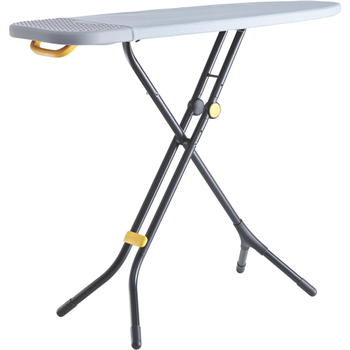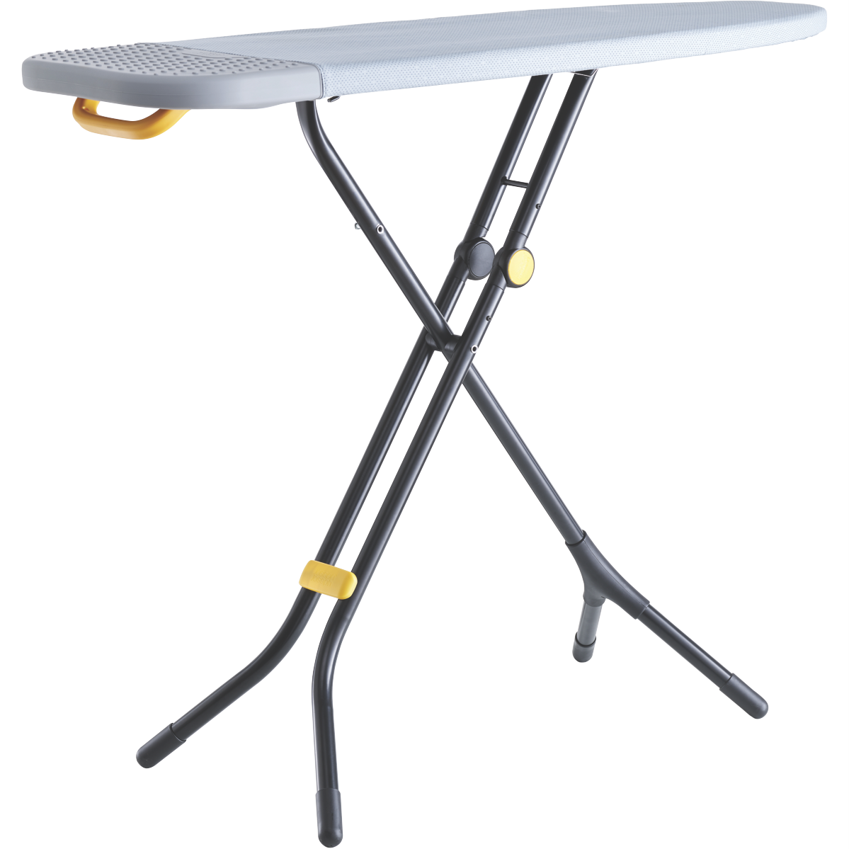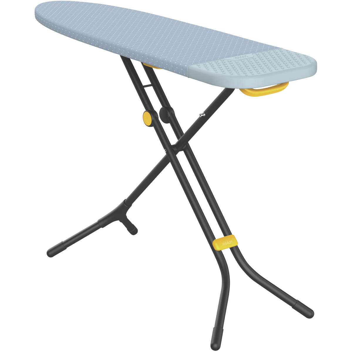 This Joseph Joseph Glide Ironing Board with Compact Legs Grey is the perfect addition to your laundry room. The board's size of 130cm high by 38cm wide provides ample ironing surface at 108cm by 38cm to tackle all your ironing needs with ease. With 7 different height positions from 84cm to 99cm you can adjust it to suit your height for comfortable ironing. The compact legs allow you to store it away in tight spaces while the grey color will blend seamlessly into any décor. Designed for stability it features a strong yet lightweight steel frame and heat-resistant melamine ironing surface. Make quick work of the ironing pile with this innovative ironing board. The manufacturer's part number for this product is 50005. Discover how this quality ironing board can streamline your laundry routine today.