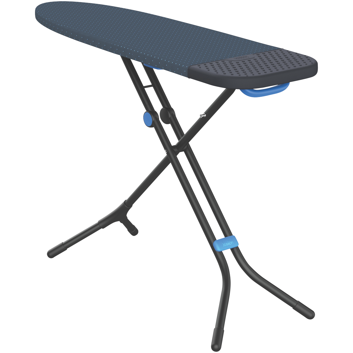 Achieve smooth wrinkle-free ironing with the Joseph Joseph Glide Plus Easy Store Ironing Board with Advanced Cover in Blue. This ironing board features a durable steel frame with adjustable height settings from 84cm to 99cm allowing you to find the perfect ironing position. The extra-large ironing surface measures 108cm x 38cm providing ample room to iron shirts pants and more with ease. The specially designed cover utilizes a high-quality foam underlay to provide superior steam absorption and heat reflection for faster easier ironing. After use the board folds down into a compact size for convenient storage. With its adjustable height settings large ironing surface and advanced cover this Joseph Joseph ironing board makes it easy to achieve crisp professional results. The manufacturer's part number for this product is 50006. Make quick work of your ironing with the Joseph Joseph Glide Plus Easy Store Ironing Board.