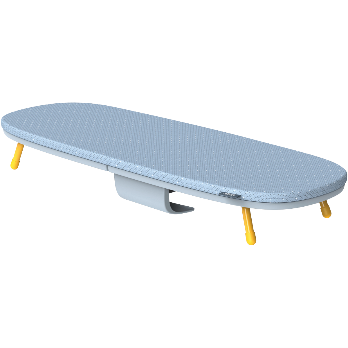 Tired of ironing on cramped flimsy ironing boards? The Joseph Joseph Pocket Folding Ironing Board brings full-size ironing convenience in a compact portable package. This innovative ironing board folds down for easy storage and transport with a durable 100% cotton cover and padded underlay for smooth ironing. When open the 33cm wide ironing surface sits 11cm above the table reducing back strain. The grey ironing board cover wipes clean for no-fuss care. Mount it on the wall with the included hardware or set it on your countertop. Let the Joseph Joseph Pocket Folding Ironing Board banish ironing hassles and cramped laundry rooms. Its smart folding design provides a sturdy 90 x 33cm ironing surface anywhere you need it. The manufacturer's part number for this product is 50009. Check out the Joseph Joseph Pocket Folding Ironing Board and enjoy full-size ironing convenience even in the smallest home.