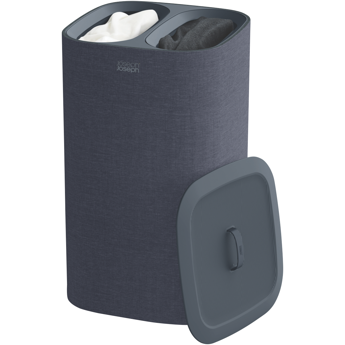 This dual-compartment Joseph Joseph Tota 60 Litre Laundry Separation Basket in stylish Carbon Black is the ultimate laundry solution for busy households. The innovative dual 30-litre compartments and removable tote bags with easy-carry handles make separating and transporting laundry a breeze. Simply sort your lights and darks into the two roomy compartments then lift out each bag when it's time to do a load. The helper handles on the base of the bags make emptying into your washing machine effortless. When you're done with the laundry the self-locating bags slide right back into place in the basket for neat organized storage. With its sleek profile and space-saving flat-pack design this laundry basket is perfect for placing in bedrooms bathrooms or utility rooms. The durable polypropylene construction ensures this basket will hold up to years of regular use. Give your laundry routine an upgrade with the Joseph Joseph Tota Laundry Separation Basket. The manufacturer's part number for this product is 50002. Take control of your laundry with this innovative laundry solution today.
