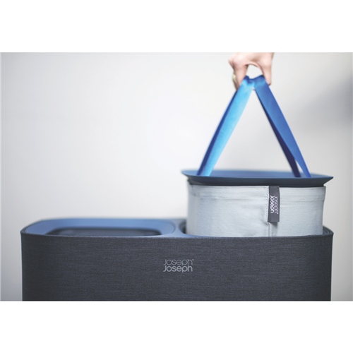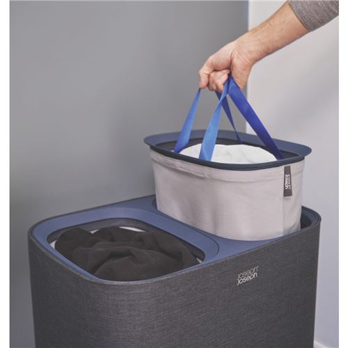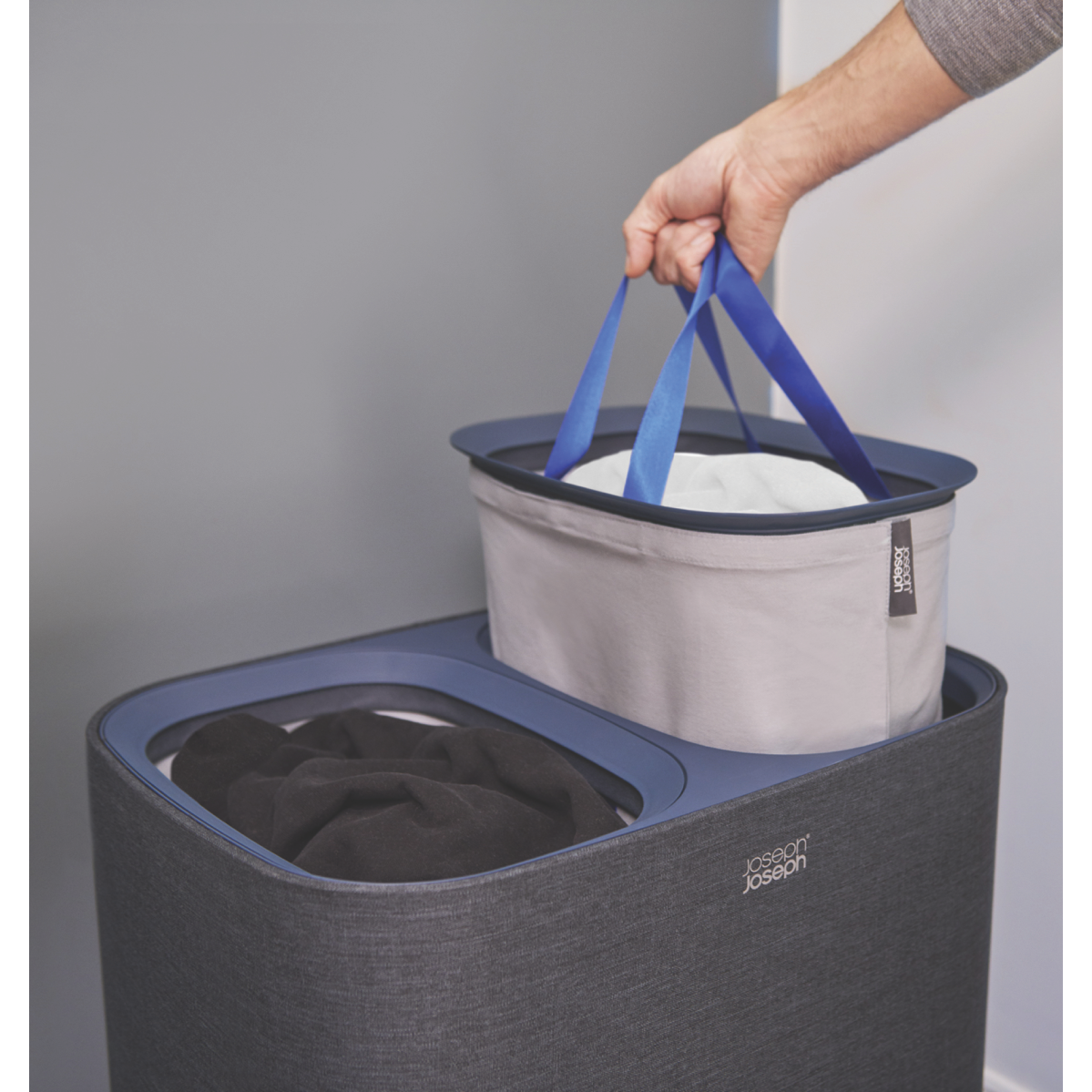 Streamline laundry day with the Joseph Joseph Tota 90L Laundry Separation Basket. This dual compartment basket allows for easy separation of lights and darks with two generous 45 litre bags. The removable tote bags have convenient carry handles that make transporting laundry a breeze. A helper handle on the base of each bag simplifies emptying into your washing machine. The bags self-locate back into the main basket for fast and easy storage when not in use. With a slim profile this basket is perfect for bedrooms bathrooms or utility rooms. It comes flat-packed with full assembly instructions for quick and easy setup. Crafted from durable plastic the Tota Laundry Basket measures 71 cm high by 56 cm wide by 39.5 cm deep. With its innovative dual compartment design this basket takes the headache out of sorting laundry. Make laundry day easier with the Joseph Joseph Tota 90L Laundry Separation Basket. The manufacturer's part number for this product is 50004. Check it out today.