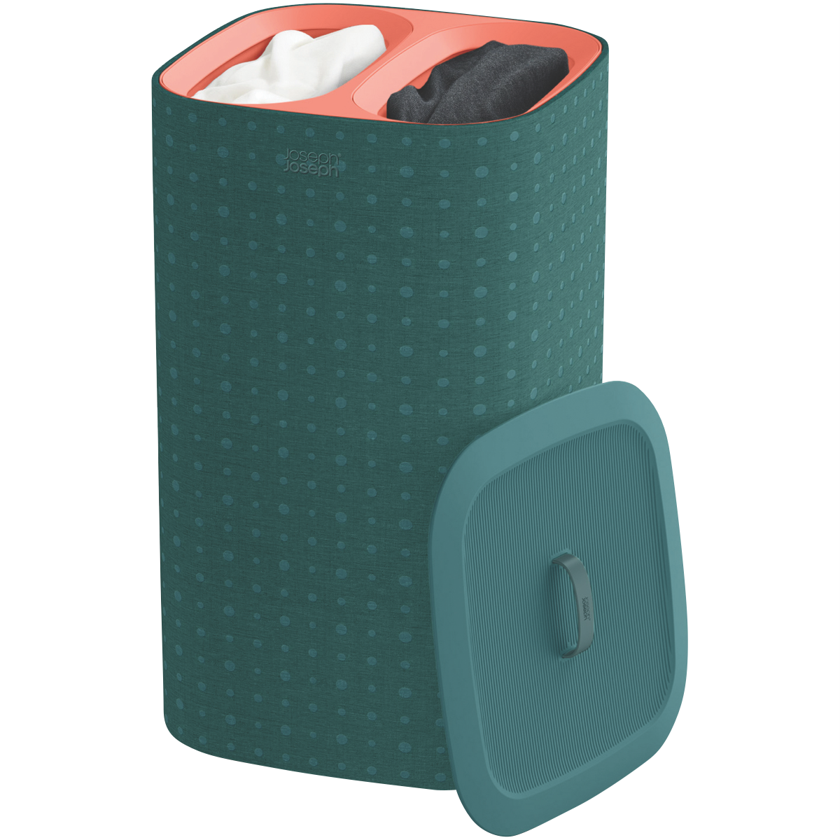 Bring order to your laundry with the Joseph Joseph Tota Pop 60 Litre Laundry Separation Basket. This innovative basket features dual 30-litre compartments to easily separate lights from darks towels from sheets or delicates from everyday wear. The removable tote bags have convenient easy-carry handles and a helper handle on the base for simple emptying. The bags self-locate back into the basket for fast fuss-free storage. With a sleek and compact design this basket is perfect for bedrooms bathrooms or utility rooms. The flat-pack construction allows for quick and easy assembly with full instructions included. Crafted from durable materials the Joseph Joseph Tota Pop Laundry Basket measures 71cm high by 39.5cm wide by 39.5cm deep. Make laundry sorting simple with this innovative basket. The manufacturer's part number for this product is 50022. Organize your laundry room with the Joseph Joseph Tota Pop Laundry Separation Basket today.