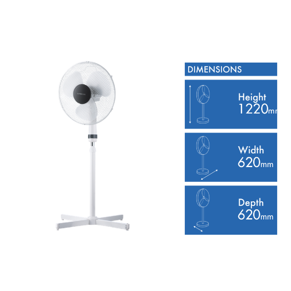 Beat the heat in style with the Kambrook 40cm Arctic Pedestal Fan. This elegant pedestal fan features a 40cm blade diameter to generate a powerful yet quiet airflow cooling you effectively while adding a touch of modern style to any space. With its sturdy white finish carry handle for portability and 80 degree oscillation for wide area coverage this versatile fan is ideal for keeping cool day or night in the home or office. The easy twist controller puts you in command of 3 fan speeds while the stable wide base and 1.3m height enable directing the breeze just where you want it. Visualize an oasis of cooling comfort from this dependable Kambrook fan. The manufacturer's part number for this product is KFA413WHT. Check out this pedestal fan and enjoy optimized airflow this season.